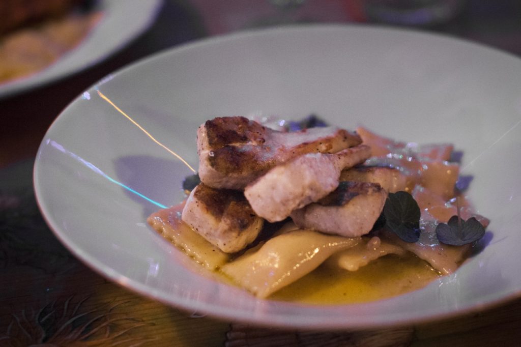 Selymes vaj- és zsályamártással, házilag készített ravioli tésztával, amely ricotta sajttal volt töltve. A kellően átsült hús kifogástalan volt, ahogy a teljes ételkombináció is.