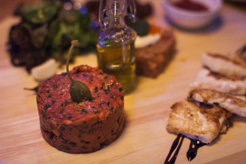 Grillezett báránysajt, grillezett chorizo (spanyol kolbász), lazacból vagy marhabélszínből készített tatárbifsztek, valamint csilipaprikában marinált ruccola ékesítette a teljes előétel-repertoárt (25,90 €), amely az öttagú csapatunkat ellátta kellő mennyiségű és kifogástalan minőségű előétellel.