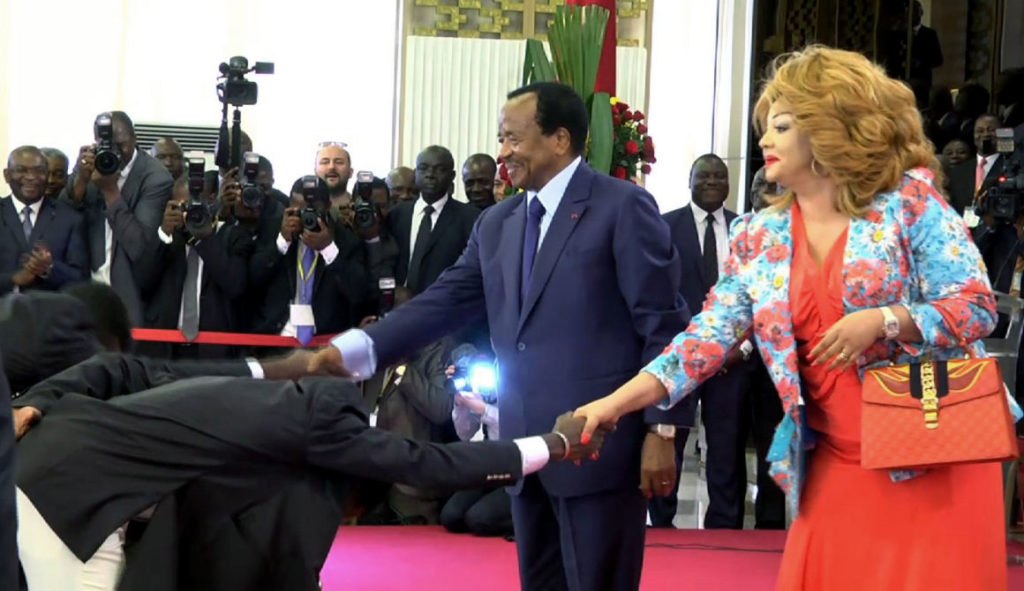 Az Afrika-kupát megnyerő kameruni válogatott játékosai így fogtak kezet országuk elnökével (és feleségével).