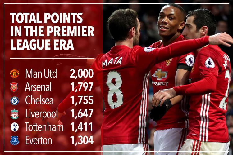 Elsőként a Manchester United érte el a 2000 pontos határt a Premier League-ben: