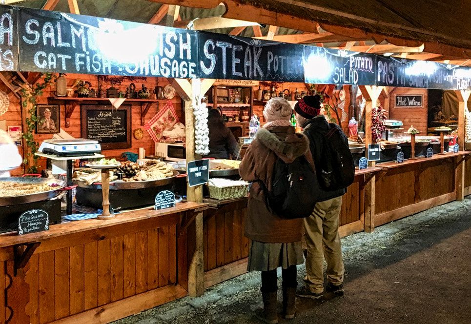 A fesztivál helyszíne valami csodálatos! Aki ismeri a Népligetben található Vajdahunyad várát, annak nem kell bemutatnom. A bejáratnál két oldalról támadtak az ételárusok, ám úgy döntöttünk, elsőnek körbejárjuk és megtekintjük a helyszínt és az ételfelhozatalt. Nagy meglepetésünkre sokkal kevesebb vendég volt, mint a mangalicafesztiválon. Talán a magyar ember jobban szereti a sertéshúst, mint a halat? Bizony magasabb lehetne a halfogyasztás tájainkon is, sokan csak karácsonykor helyezik előtérbe!