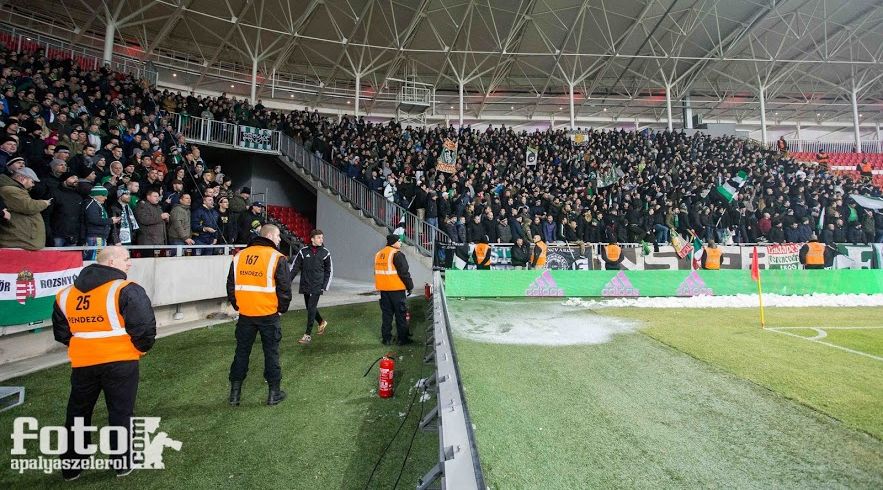 A Fradi-tábor Debrecenben. (A szkenneresek – jóval kevesebben – két szektorral odébb.)