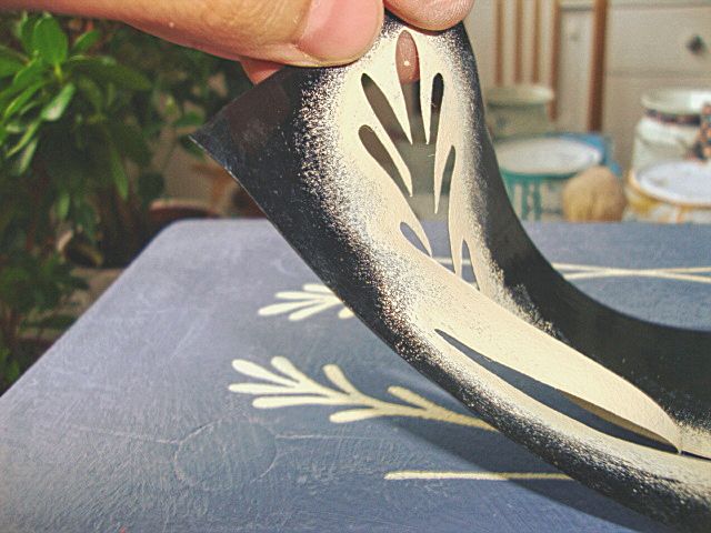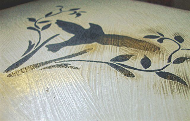 4. A stencil leemelése és a száradás után „le kell zárnunk” a festéket. Két lehetőségünk is van, bútorviaszt, vagy lakkot kenünk rá.