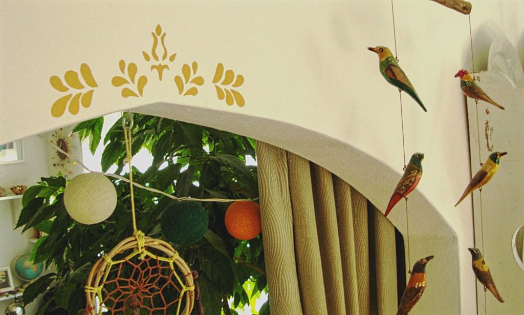 A stencillel való festés házi szakszava a „tötyögtetés”. (Akinek jobb ötlete van erre a mozzanatsorra, kérem szépen, írja meg nekem! Megmentene a kínos szituktól.) Jobb kifejezést eddig sajnos még nem találtam a finom, szivacsos végű ecsettel való nyomkodó, függőleges csuklómozdulatokra.