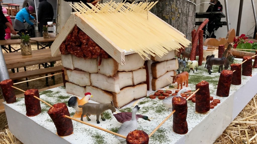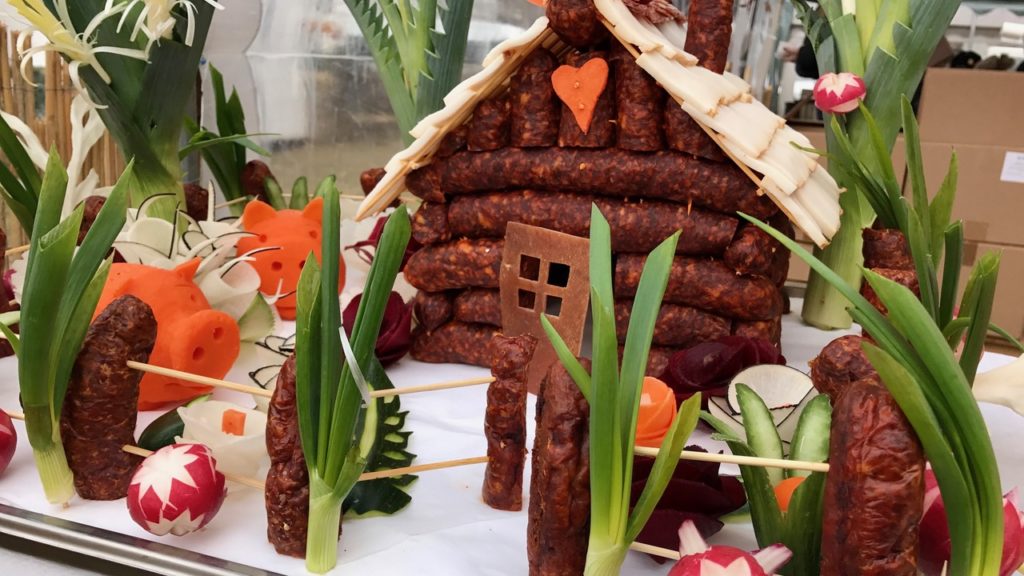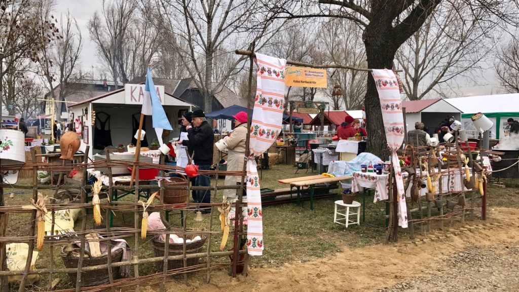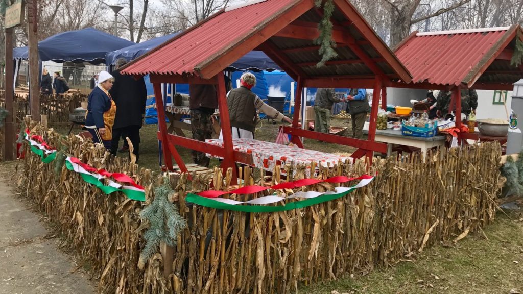 Próbáljuk meg elképzelni Böllérfalvát… Huszonöt csapat által hagyományosan kialakított parasztudvar, ahova minden vendéget tárt karokkal várnak! Teával, pálinkával, zsíroskenyérrel, pogácsával, majd később a disznóból elkészült ételekkel… Első falatként a hagymás sült vér került terítékre. Mivel kóstolójegy (1 €) az ára, több helyen is kóstolgathatsz, kis adagokban, lassan de biztosan jól is laksz… 🙂