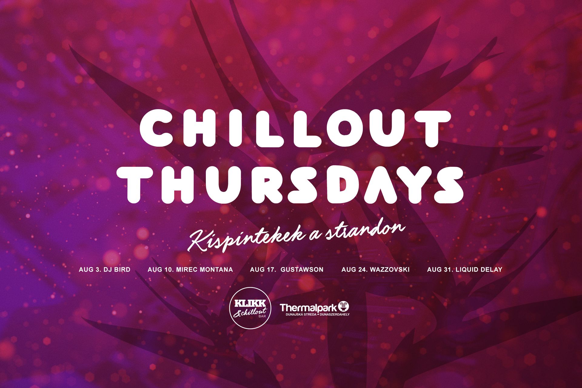 Folytatódik a Klikk & Chill Out Bar által rendezett délutáni DJ-s, pihenős csütörtöki sorozat a dunaszerdahelyi strandon. Mivel az augusztusi hónap átlag harminc fokkal és öt csütörtökkel kedveskedik nekünk, ezért bőven lesz lehetőséged némi jó zenét hallgatni és meginni pár hideg italt csütörtökönként délután négytől este kilencig. (Címlapfotó: Jojo Samek)
