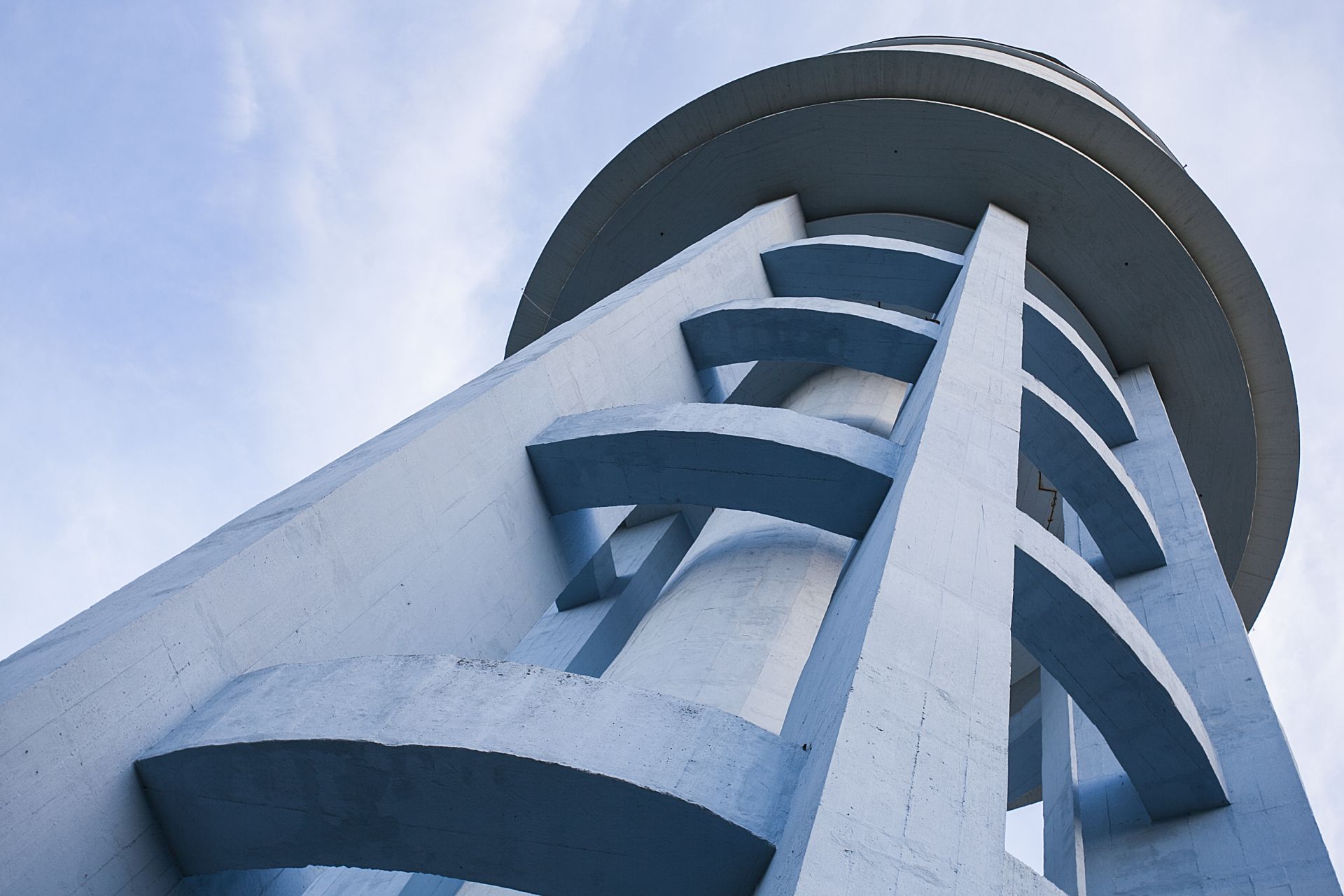 Alulról furcsa alakzatokat ölt a 49 méter magas torony.