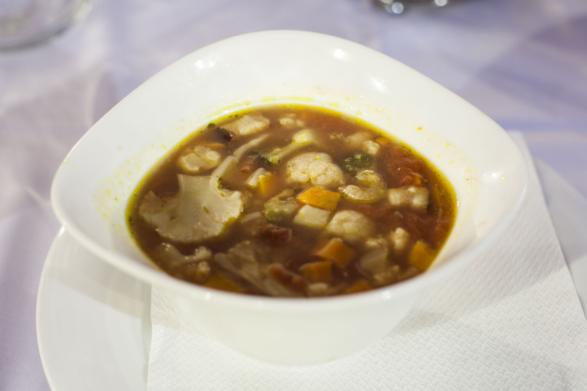 A halleves Porticello módra (8,60 €) volt a legnagyobb és legpozitívabb meglepetés számomra. A tengeri herkentyűkkel bőven telített leves nagyon impozáns ízvilággal rendelkezett. Tény, hogy a halászlével első hallásra testvéreknek tűnnek, ám kóstolás után már rokonoknak sem. Kimagaslóan a legjobb leves volt a kínálatból.
