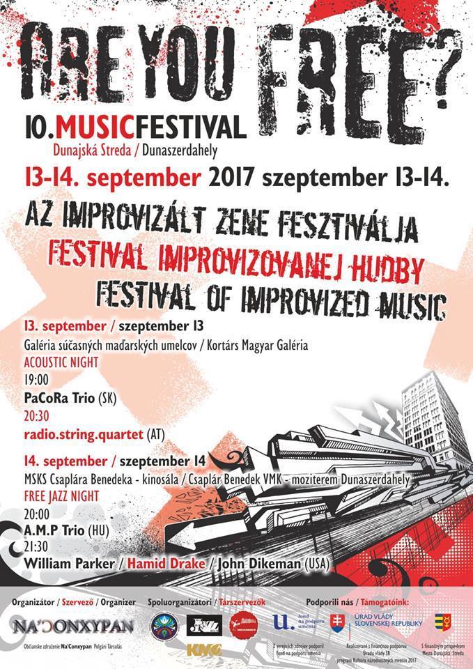 A Na’conxypan polgári társulás immáron tizedik éve szervezi Dunaszerdahelyen az Are You Free zenés fesztivált. Improvizatív jazz és fülbemászó hangszeres zene várja a látogatókat két napon át. Minden évben különleges ez az esemény, sok-sok külföldi muzsikussal, workshopokkal, jó emberekkel teli. (Címlapkép: Göndör László)