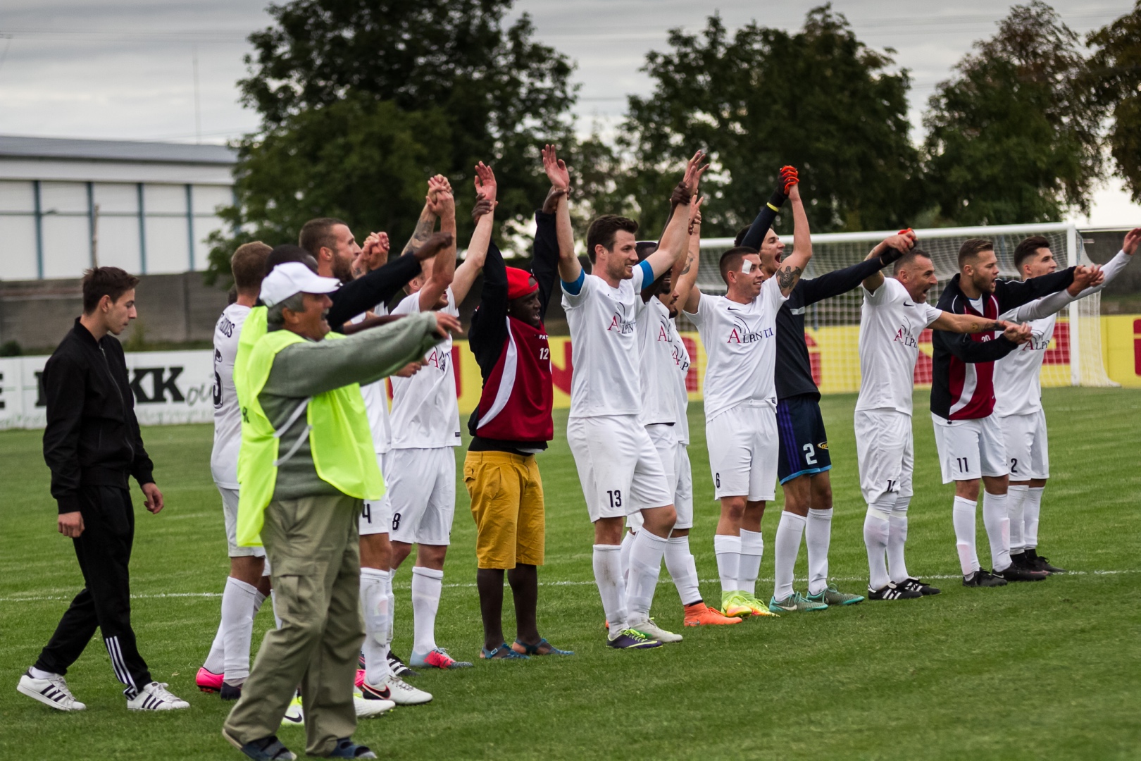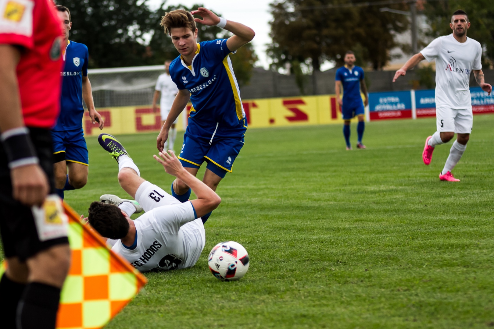 Meccs. Az első percektől a hazai srácok rendkívül fegyelmezettek, harcolnak, nincs vesztett labda, hiba becsúszik, de érezni azt a hm…, hogy is mondjam, a ,,megdöglök a pályán”-feelinget. Például Adiaba. Csak ő tehet arról, hogy per pillanat nem Fortuna Ligás játékos, a tudásával és például a tegnapi teljesítménnyel simán ütötte néhány elsőligás középhátvéd színvonalát. Kár…