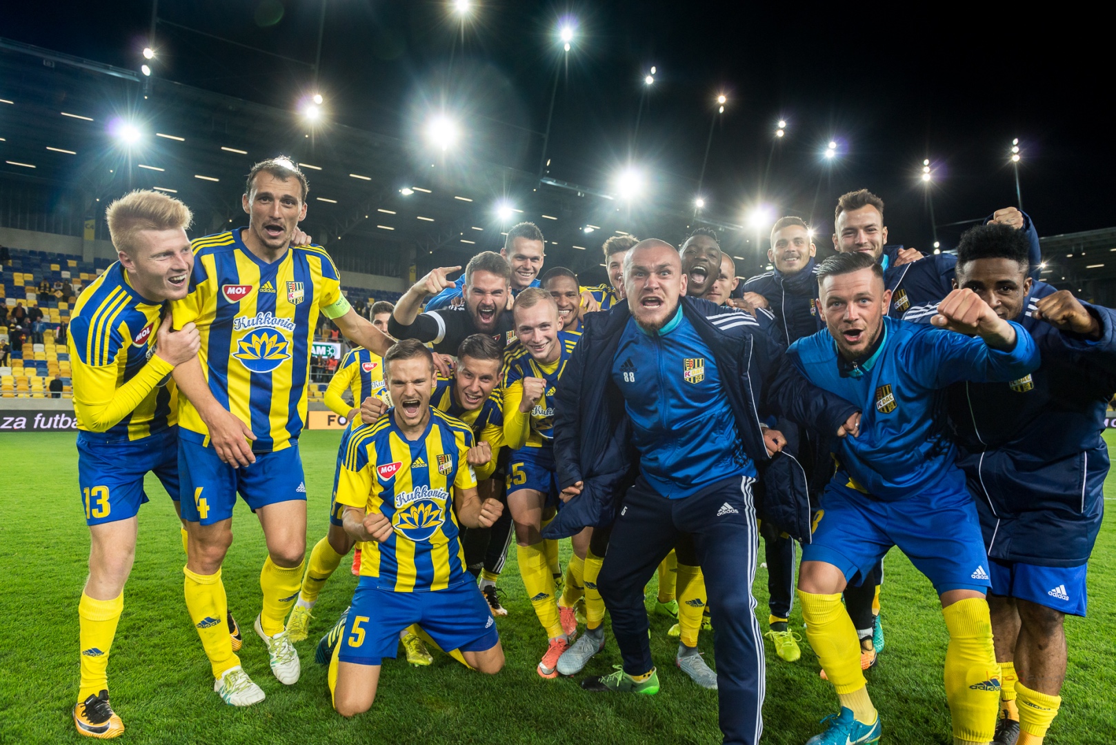 A játékosok elbúcsúznak a nézőktől, én Nagy Krisztivel figyelem a meccsnap utolsó felvonásait. Egyszercsak látom, hogy a középpályán a játékosok gyülekeznek, és Jojo hevesen mutogat valamit a DAC játékosainak, azok pedig elkezdnek bolondozni a fotózás közben. Jojo gesztikulál, mint egy őrült karmester. Miután befejezik, Jojo jön felém.