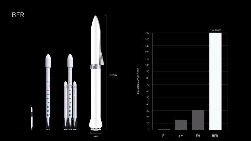 A BFR rakéta teljes mértékben újrahasznosítható lesz, és lehet majd az űrben tankolni. Ezzel a rakétával segítik majd az ISS munkáját, telepítik a „Moon Base Alpha”-t a Holdon, valamint ez a rakéta repíti majd el az úttörő telepeseket és gépeket a Marsra 2022-től.