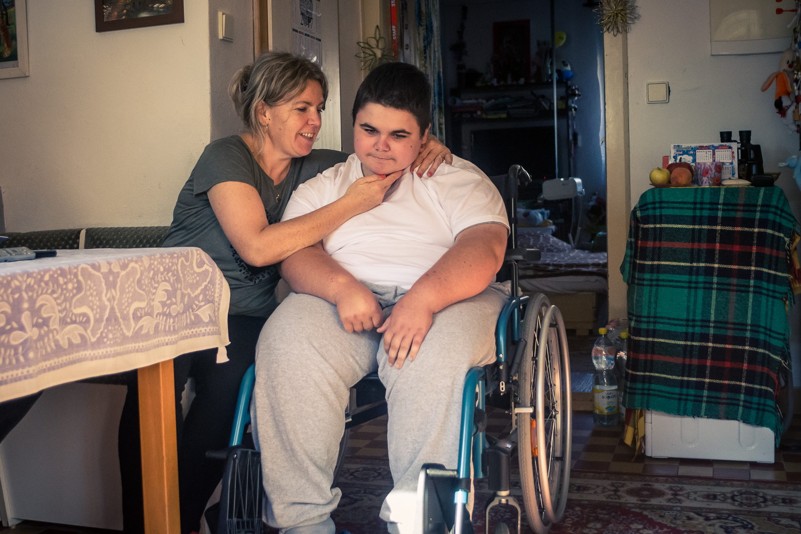 Miután leülünk az asztalhoz, az édesanyát kérdezem, aki így válaszol: ,,Zsolti 2001-ben született, egészségesen. Kilencéves korában kezdett lábujjhegyen járkálni. Budapestre vittük kórházba, és megkaptuk a szörnyű diagnózist: gyógyíthatatlan izomsorvadás. Ezután szteroid gyógyszereket kapott, a szedésétől felhízott egy hónap alatt húsz kilót. Sajnos az állapota radikálisan romlik – a gyógyszer is csak arra szolgál, hogy lassítsa a folyamatot.”