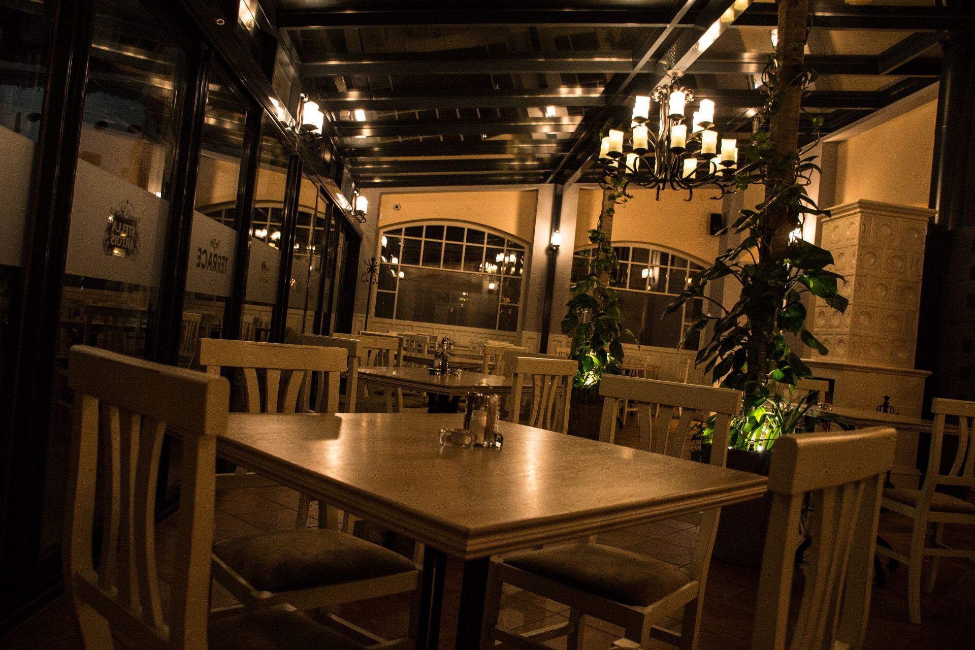 A New York étterem két részből áll: az étterem melletti udvaron található a stílusos, kandallóval fűtött, télikert jellegű terasz, ahol mi is kényelmesen helyet foglaltunk.