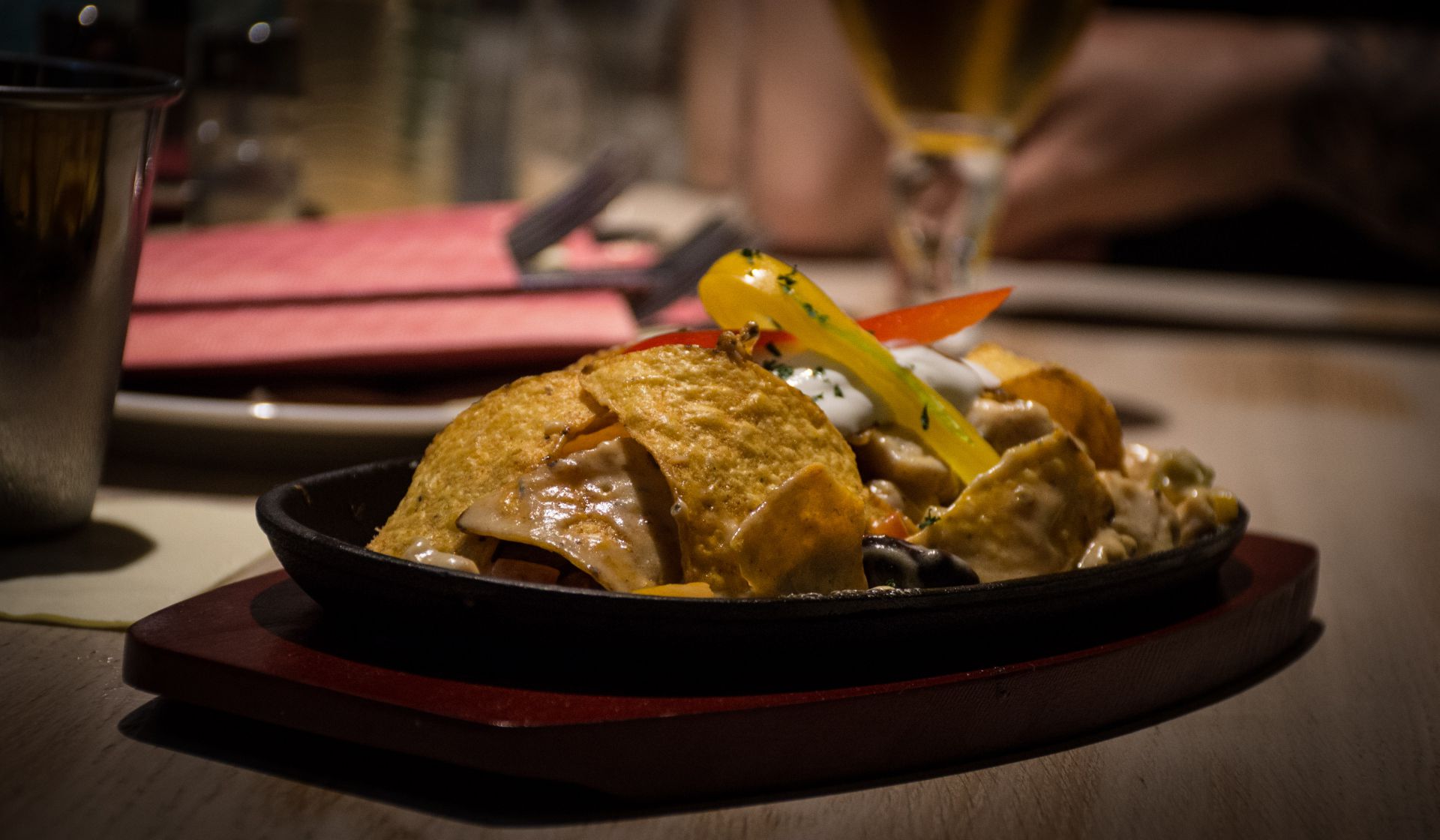 Az előételek terén a nachost (4,80 €), és a grillezett halloumi sajtot (4,80 €) választottuk. A nachos számomra nagyon kellemes meglepetést okozott, mivel a jellege és az ízvilága nagyon mexikói, így kezelhetnénk akár egy bevándorlóként is… 🙂 A ropogós chips alatt nagyon ízletes, pikáns, sajtos, tejszínes csirkeragu található, amelyet többfajta babbal és jalapeño paprikával vegyítettek. Valóban finom és kiadós előétel!