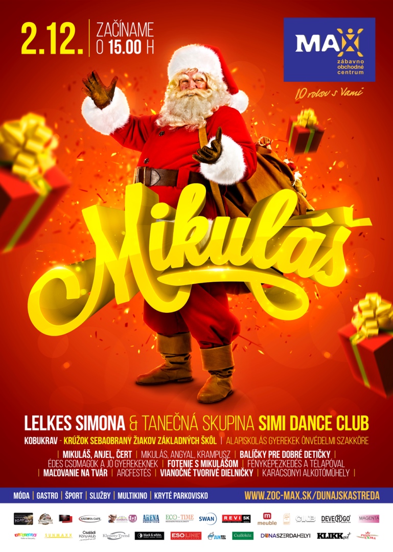 Kedves gyerekek, gyertek el december 2-án, szombaton a dunaszerdahelyi MAX-ba, ahol vidám műsorral és édes jutalommal vár majd rátok a Mikulás, az Angyal és a Krampusz!