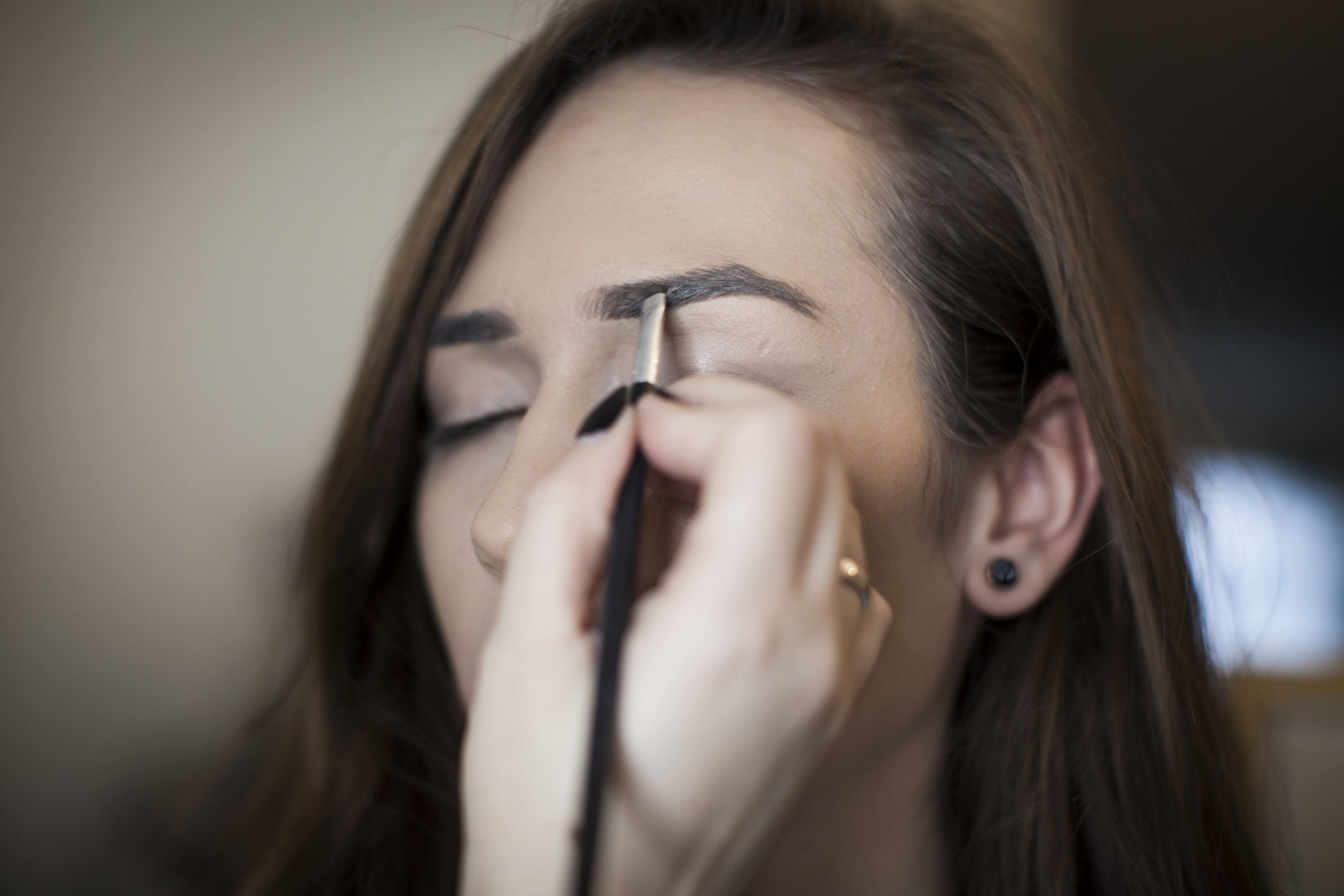 - Ne feledkezzünk meg a szemöldökünkről! Szemöldökporral igazítsuk ki, odafigyelve a színre és a formára! Az orrnyeregnél kezdődjön, a külső szemzugnál végződjön, a legmagasabb pontját pedig nyitott szemmel, az orrnyereghez mérve rajzoljuk meg. A színt próbáljuk a hajunkhoz választani. Az alsó és felső részét korrektorral igazíthatjuk meg, mely optikailag picit feljebb helyezi szemöldökünket.