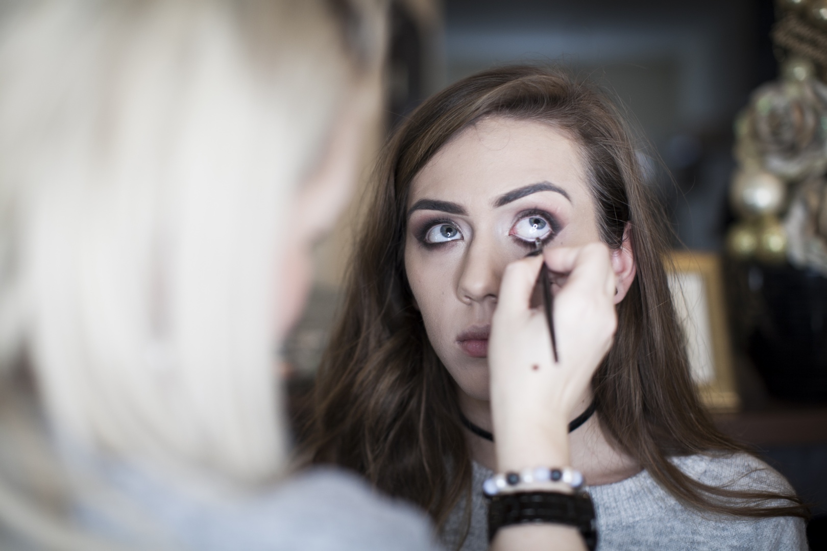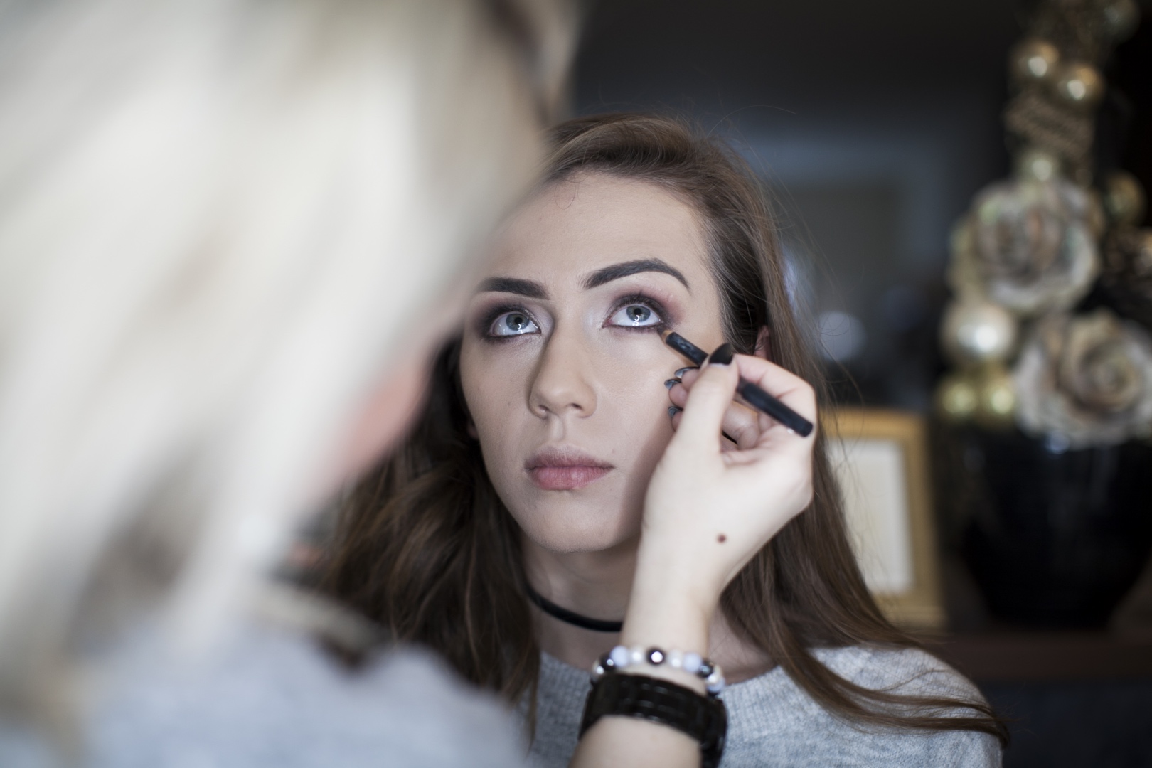 - Fekete tusvonal is került Emese szemhéjára, mely még inkább kiemelte gyönyörű szemeit. Minél kisebb a szemünk, annál vékonyabb vonalat kell húznunk.