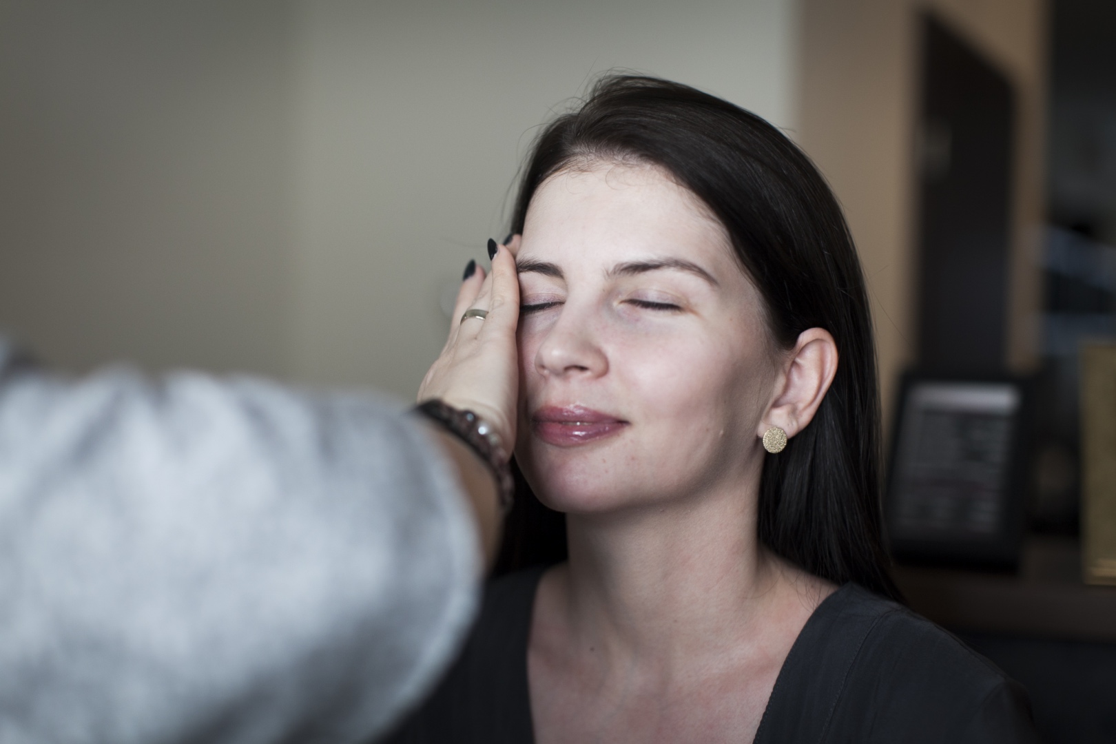 • Az első lépés szintén az arc hidratálása, amit az alapozás követ. Mivel modellünk, Kata bőre világos, nem volt szükség több árnyalat használatára. Lívi ezúttal is használt korrektort.