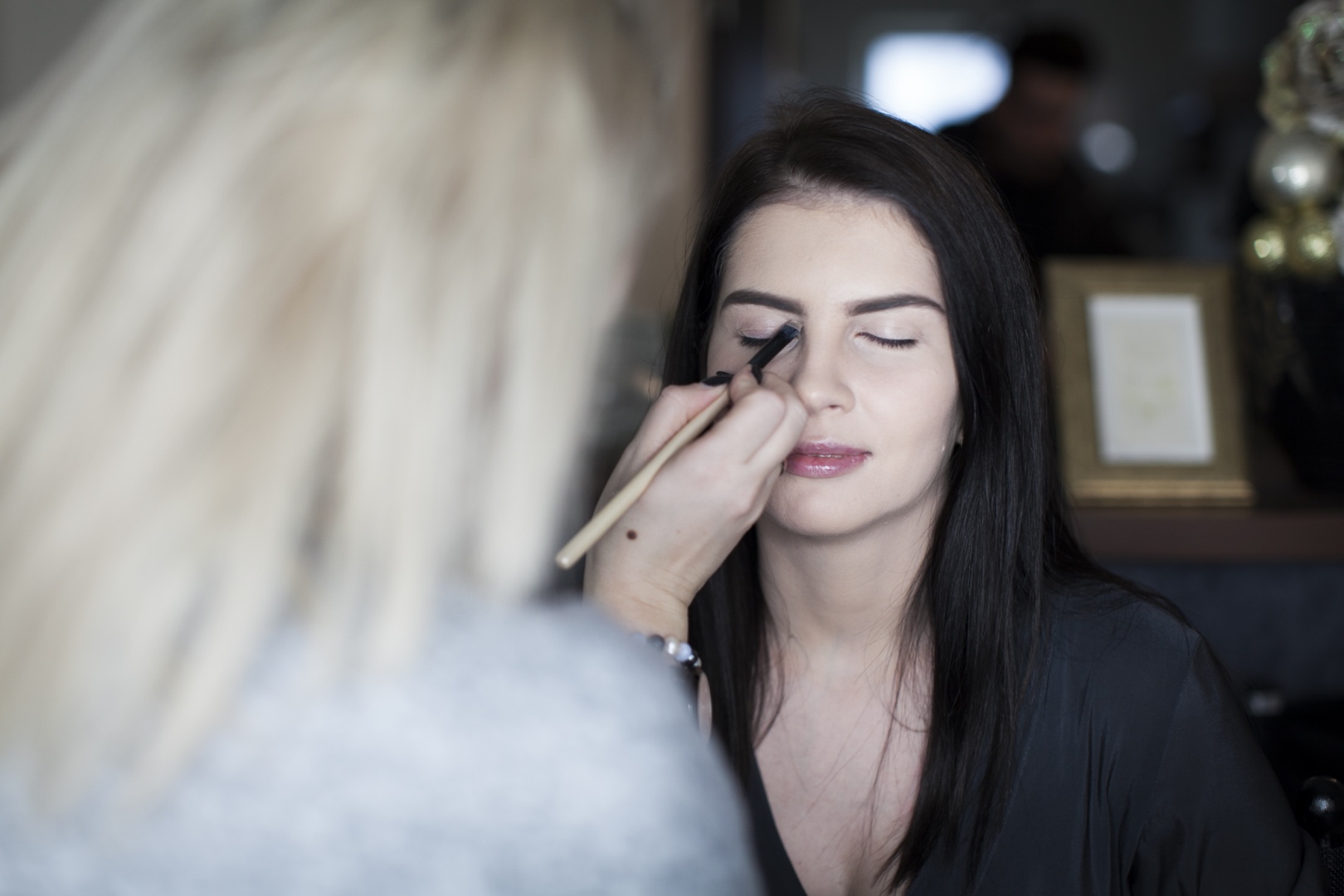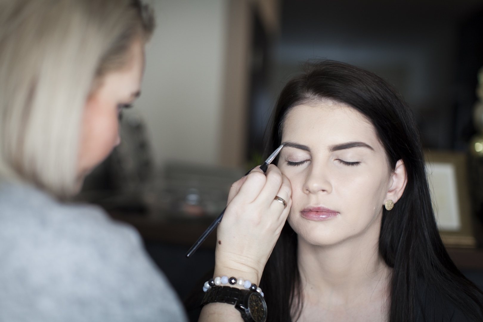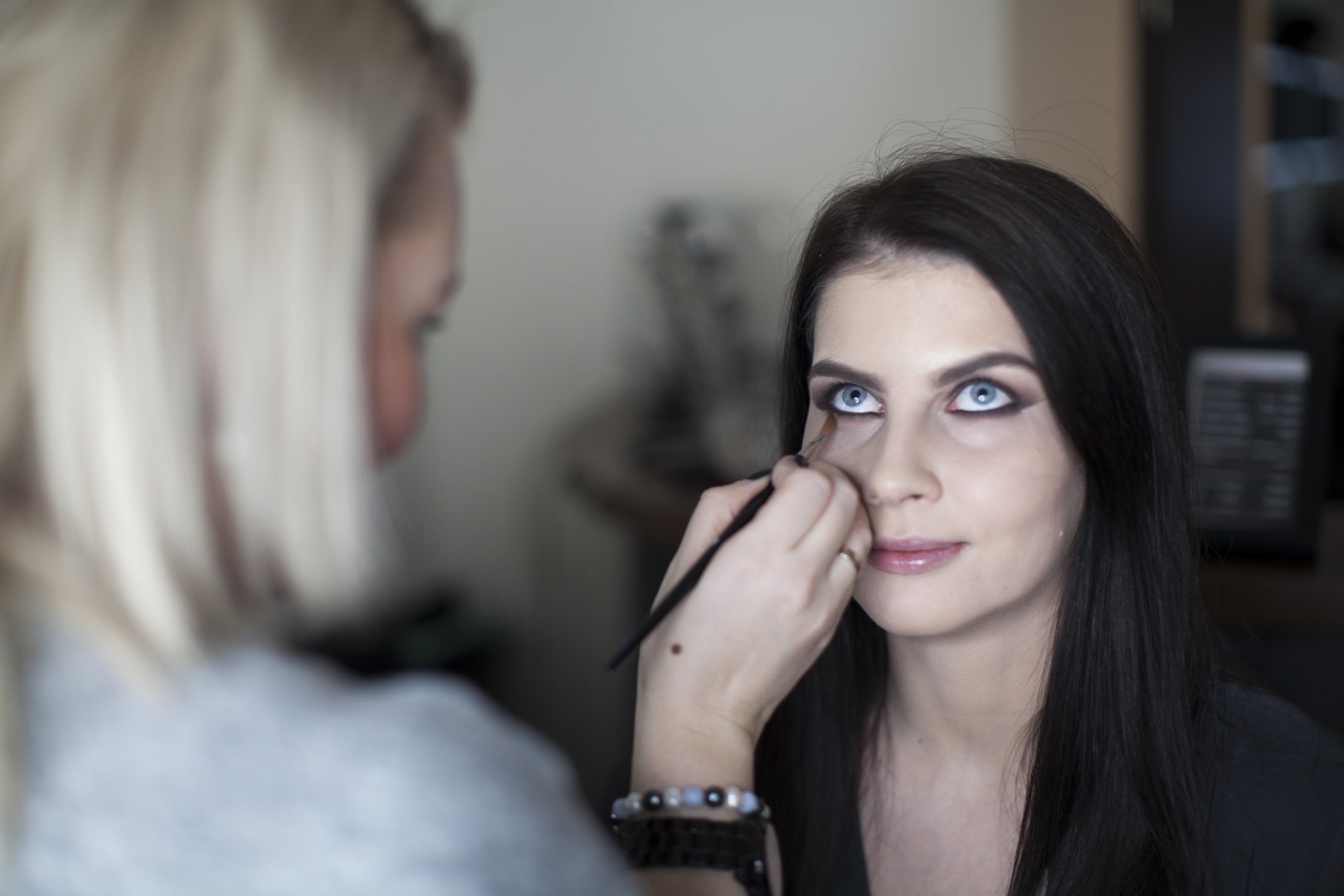 • Ecset és korrektor segítségével formázta a szemhéjra került sminket.