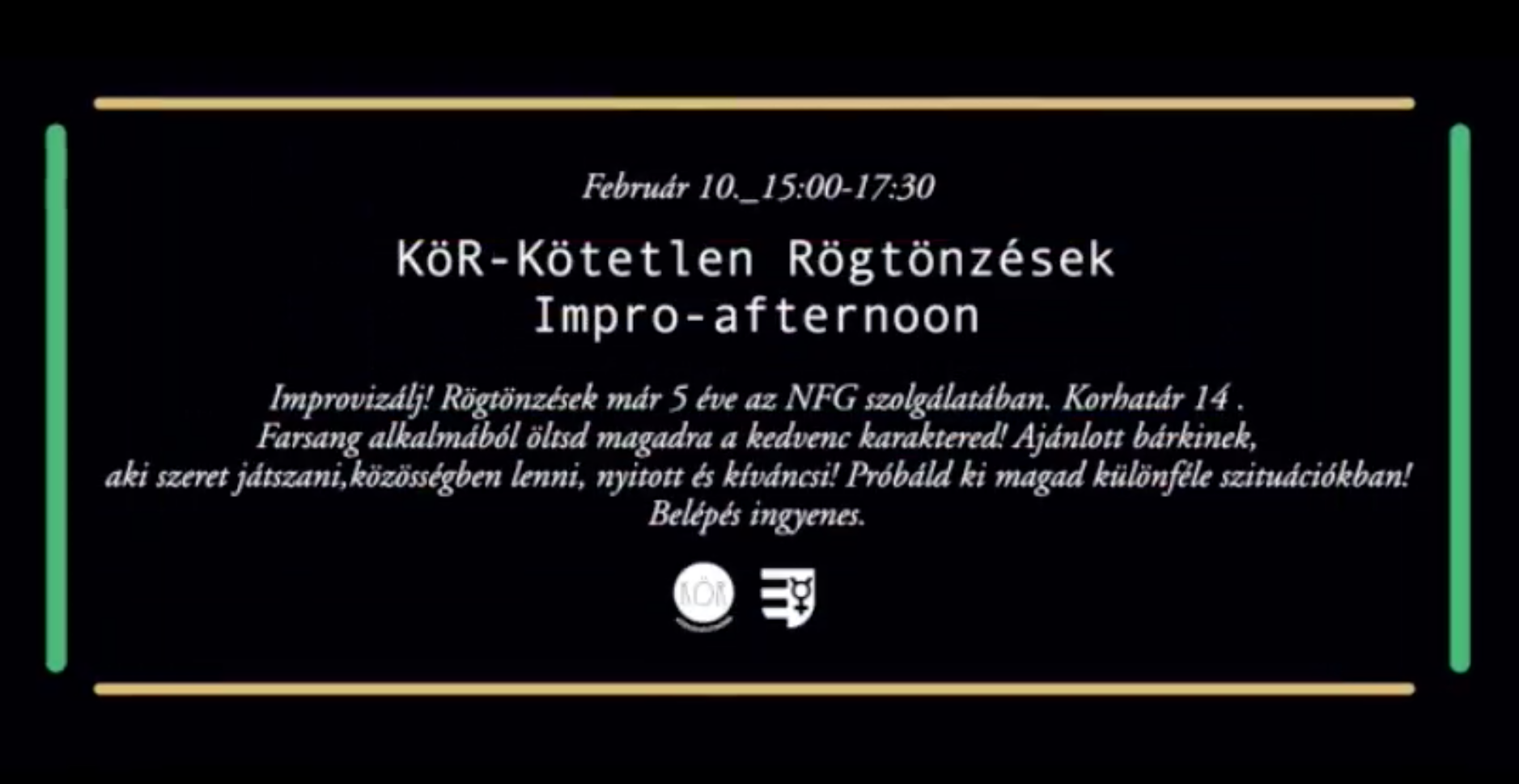 Improvizációs-, dráma- és önismereti játékok az NFG klubban. A már 5 éve tartó imprósorozat farsangi kiadása most szombaton, délután háromtól indul a klubban.