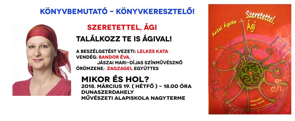 A Családi Könyvklub szervezésében hétfő este 18:00 órától kerül sor Antal Ágota könyvének bemutatójára, illetve a könyvkeresztelőre. A könyv címe: Szeretettel, Ági.