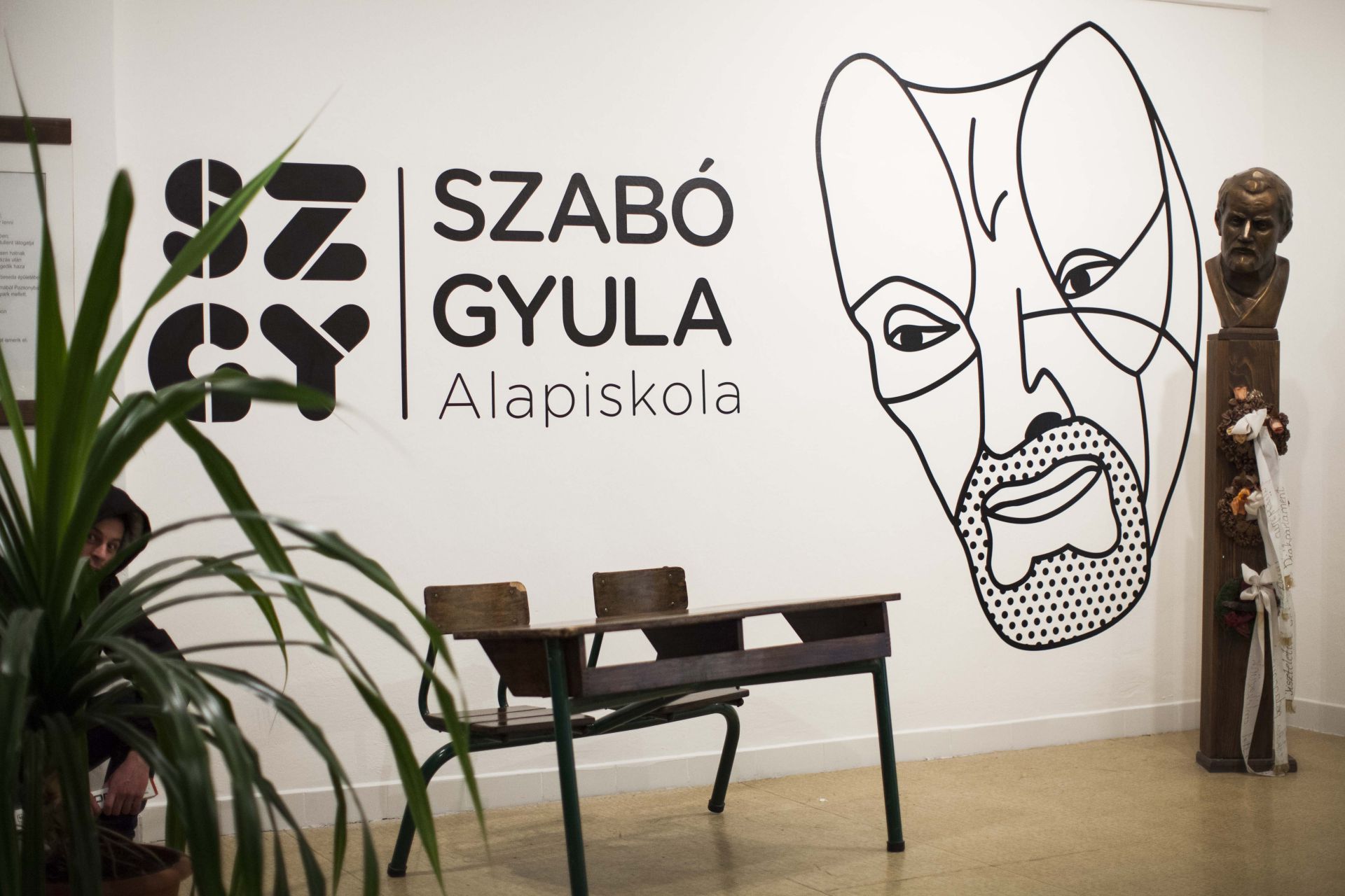 Hasonlóan részletes, de talán az iskolán belül még kiterjedtebb Szabó Gyula munkásságának megjelenítése a róla elnevezett alapiskolában. Ez a dunaszerdahelyi trikk tervezőiroda kreatív csapatának köszönhető.
