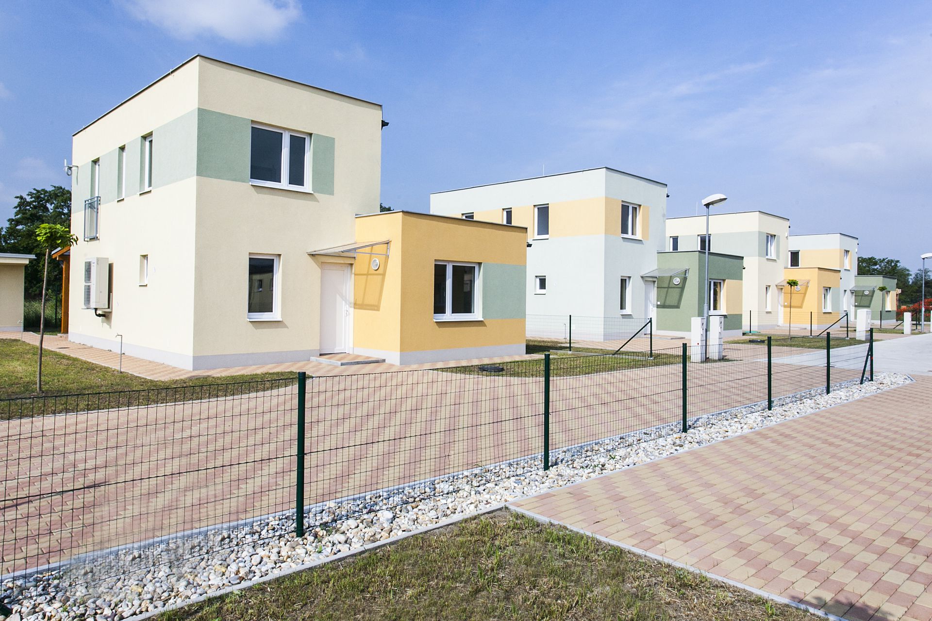 A nagybetűs életet éppen elkezdő fiatal pároknak, családoknak, de akár egyedülálló személyek számára is kiváló, igényesen kivitelezett otthonokról van szó, modern berendezéssel, parkosított környezettel.