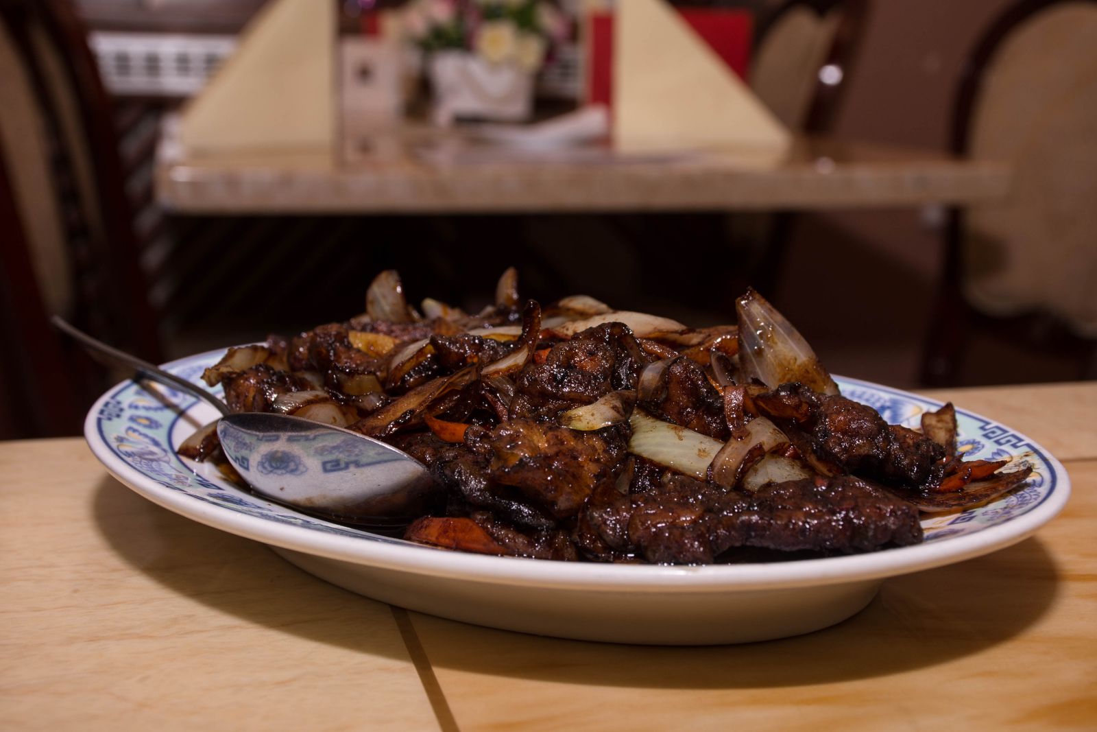 Zöldségek bőséges kíséretben érkeztek az ízletes és puha marhahúsfalatkák, amelyek a szójaszósz jellegzetes barna színével, ízkavalkádjával és tipikus aromájával kísérték az ételt. A szósz ízvilága egy alapértelmezett kavalkád, amely közel az összes ázsiai ételben jelen van, ettől s persze az egyéb összetevőktől is oly különlegesek számunkra a távol-keleti falatok. Ami biztos, hogy ha ezt az adagot megeszed körettel együtt, akkor lehet, hogy a helyszínen jó lenne megpihenned, hiszen a felkínált adag hatalmas! Mi köretként a Chop suey (3,25 €) sült rizstésztát választottuk, amely akár magában kitesz egy főételt!