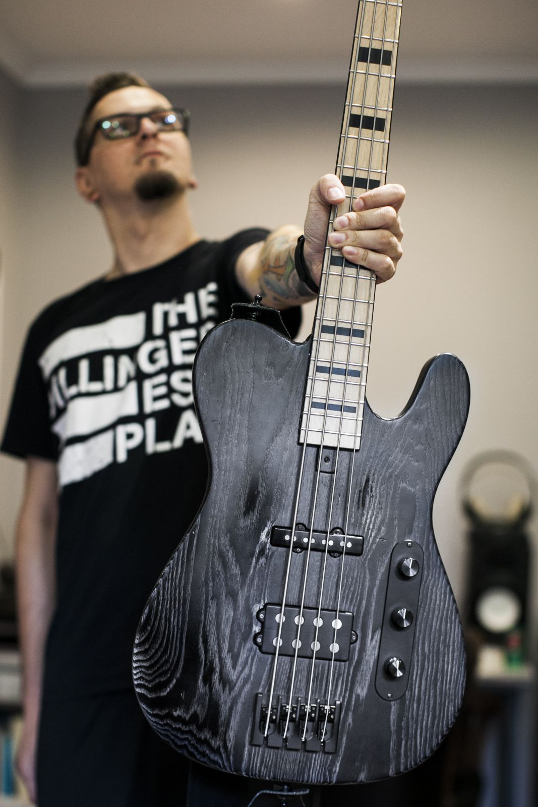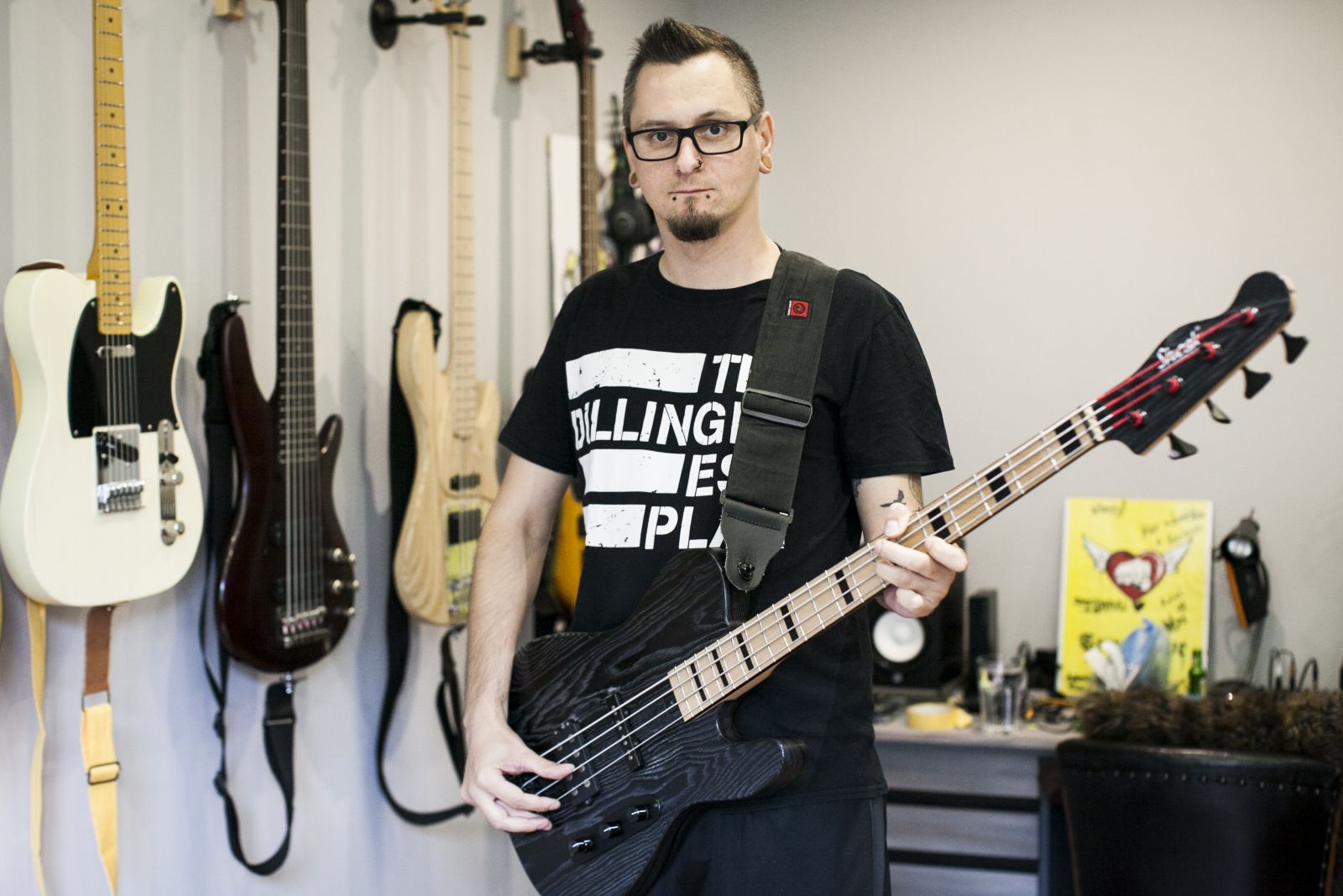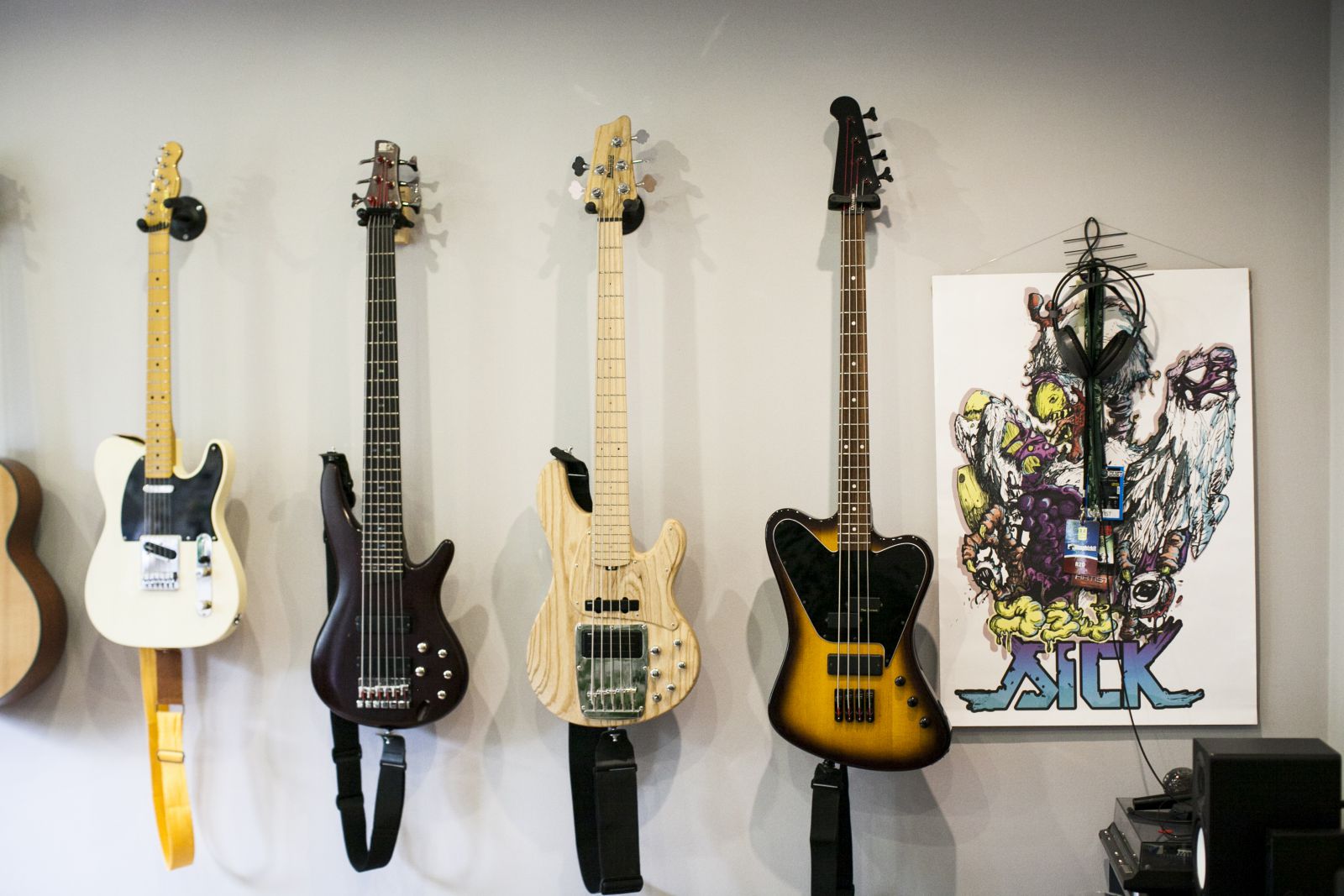 Ernőt sokan ismerhetitek a Jönvukk-korszakból. A bandából, amely elsőként játszott a környéken “no-school hiphop”-ot. A metálzene szerelmeseinek is ismerősen csenghet a neve, hiszen a SiCK zenekar dicső basszusfelelőse, újabban pedig egy pozsonyi bandával, a Rust2Dusttal nyomja, amellyel már többek közt a Limp Bizkit előzenekaraként is szerepeltek Pozsonyban. Ernő lakásában egy szoba csak a gitároké, melyek szépen, egymás mellett lógnak a falon. Mintha mindegyik mondani akarna valamit, közben a háttérben halkan hallatszik, ahogy vibrál a mély frekvencia. Van is mondanivalójuk, hiszen Ernő mindegyikhez külön sztorit fűzött, bemutatva mind a kilenc modellt, az elsőtől az (eddig) utolsóig.