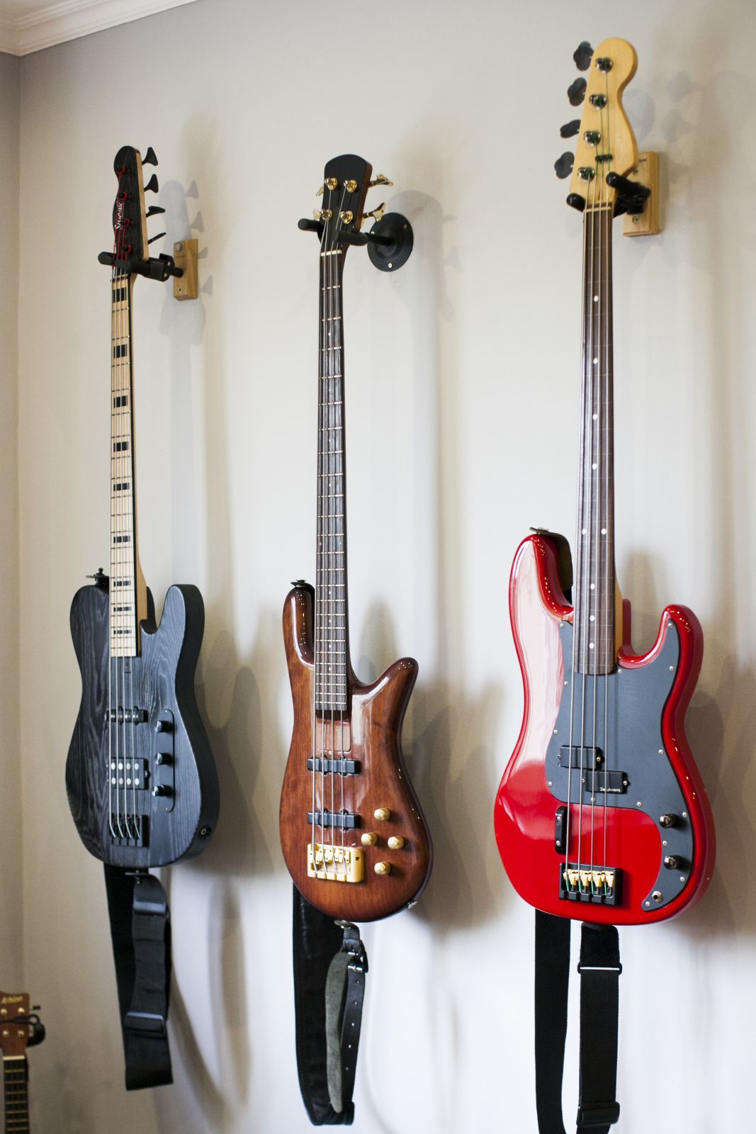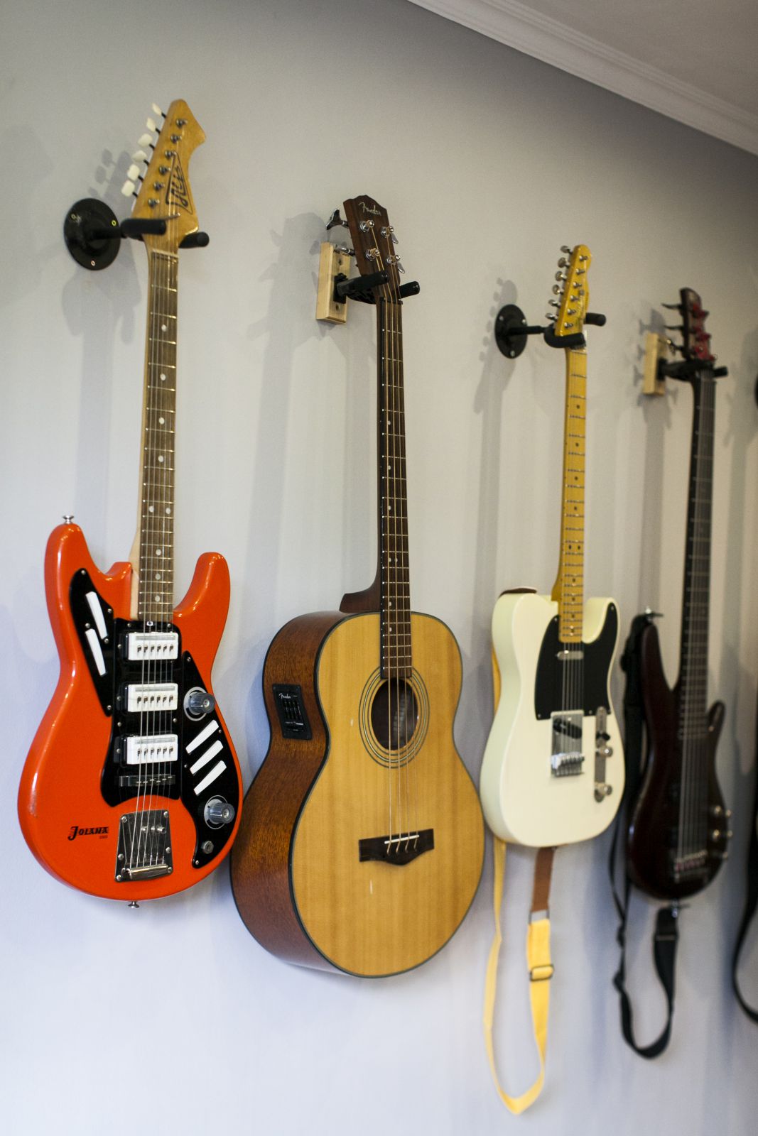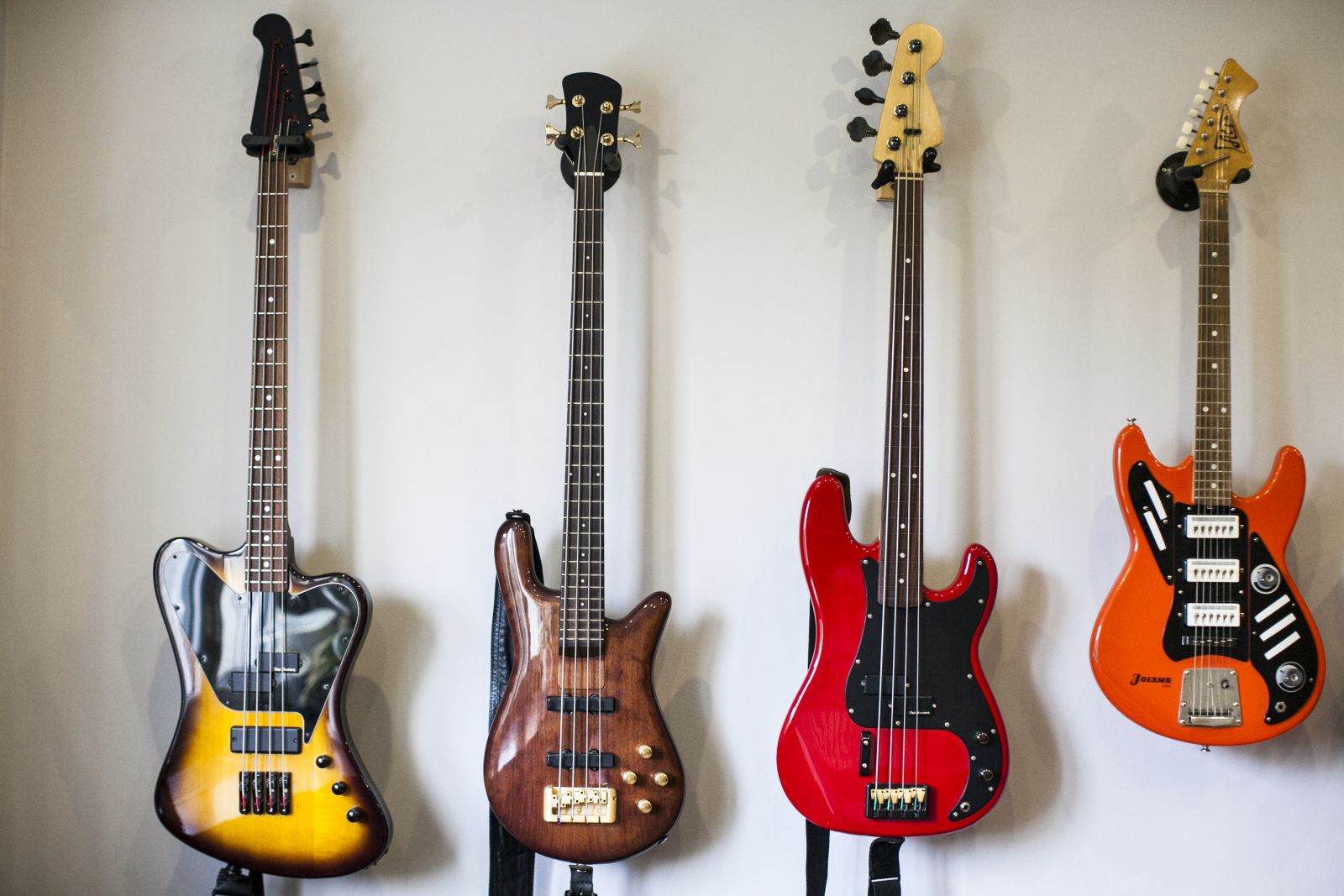 Ernőt sokan ismerhetitek a Jönvukk-korszakból. A bandából, amely elsőként játszott a környéken “no-school hiphop”-ot. A metálzene szerelmeseinek is ismerősen csenghet a neve, hiszen a SiCK zenekar dicső basszusfelelőse, újabban pedig egy pozsonyi bandával, a Rust2Dusttal nyomja, amellyel már többek közt a Limp Bizkit előzenekaraként is szerepeltek Pozsonyban. Ernő lakásában egy szoba csak a gitároké, melyek szépen, egymás mellett lógnak a falon. Mintha mindegyik mondani akarna valamit, közben a háttérben halkan hallatszik, ahogy vibrál a mély frekvencia. Van is mondanivalójuk, hiszen Ernő mindegyikhez külön sztorit fűzött, bemutatva mind a kilenc modellt, az elsőtől az (eddig) utolsóig.