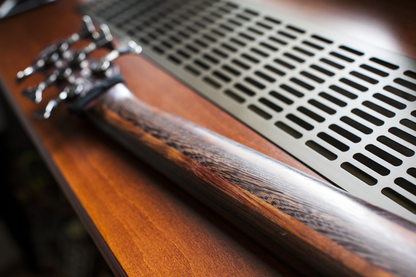 Ő a custom modellem. A szlovák mester, Rudo Sivčák által egészen precízen elnevezve ERN 4 T Sivcak Custom. Erre esküszöm! Valahogy ez igazán az enyém. Egy Telecaster test, hosszabb nyakkal és fordított fejjel. Ő szerepel a második Rust2Dust lemezen, a most készülő harmadik albumon, és vele játszottam az utóbbi 3 évben az összes koncerten. Nagyon a szívemhez nőtt, mivel saját fejlesztés. Beletettem mindent, amit fontosnak találtam, de épp csak annyit, hogy ne is bonyolítsam túl. Már látszanak rajta a használat jegyei. Úgy tartom, hogy a hangszer nem arra való, hogy vitrinben tartsuk, hanem hogy használjuk. Néhány karcolás, némi kopás, de bevallom, nem zavar. A patinájának tartom az összes apró sérülését, hiszen mind kötődik egy közös élményhez, kalandhoz. Szerencsére a hangját ez cseppet sem csorbítja.