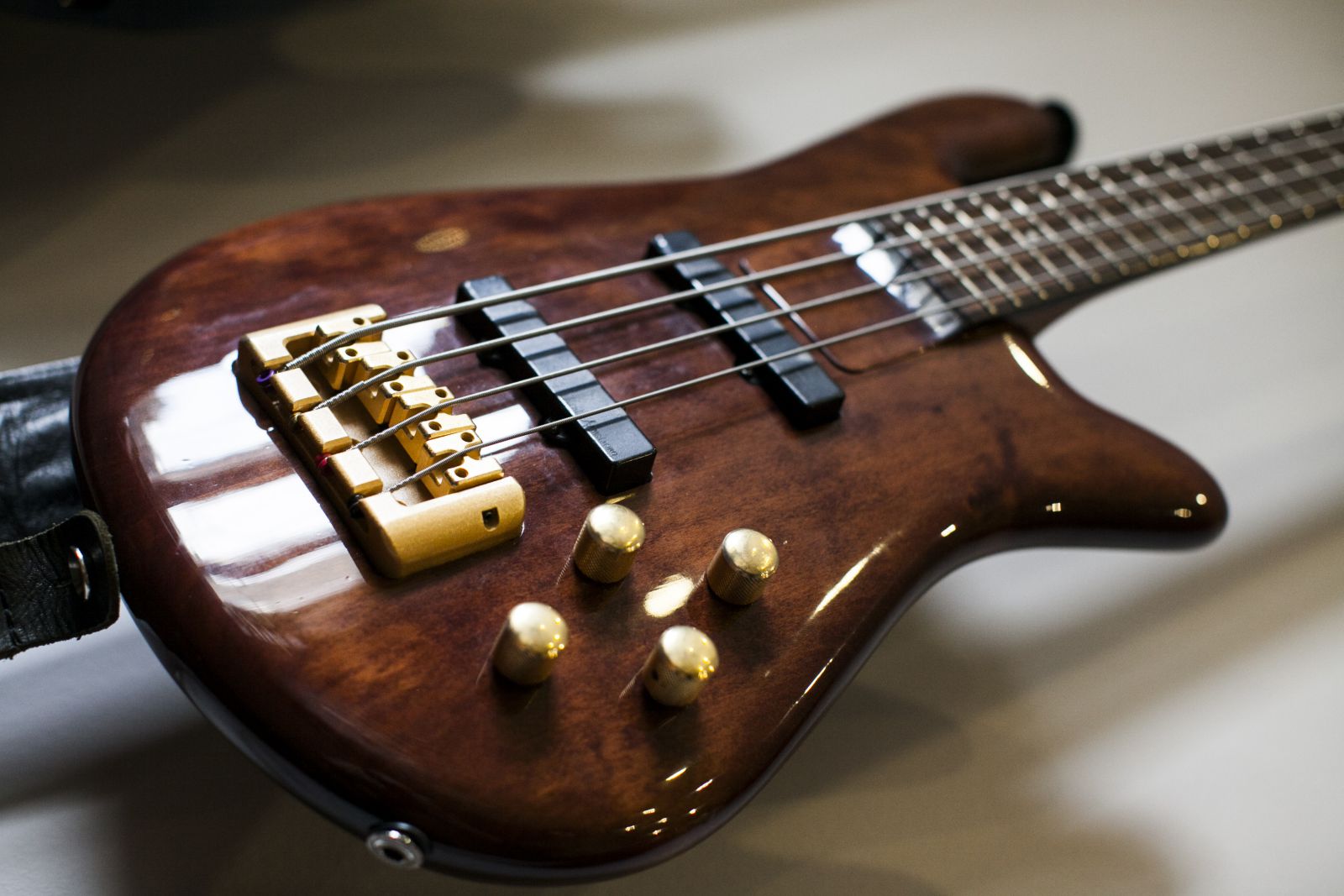 Azaz “Ibike”. Az egyetlen öt húros. Szerelem volt első látásra. Tükrözi a kedvesem jó ízlését is, aki képes kivárni az órákon át tartó kutatásaimat, próbálgatásaimat egy hangszerboltban. Így lett Ibike is. Amiért egy bécsi boltba mentem, abban csalódnom kellett, így nem vettem meg. Közben a párom rámutatott erre az Ibanezre, ami azonnal megfogott. Három mágneses húrláb-hangszedője lehetővé teszi, hogy különféle hangzást varázsoljak vele. A hagyományos duruzsoló bőgőhangzástól egészen a csattogós metálig minden kitekerhető. Pont a sokoldalúsága fogott meg. A külső megmunkálása miatt (nyers fa festés nélkül) egy ideig azt kérdezték: jé, ez még nincs befejezve?