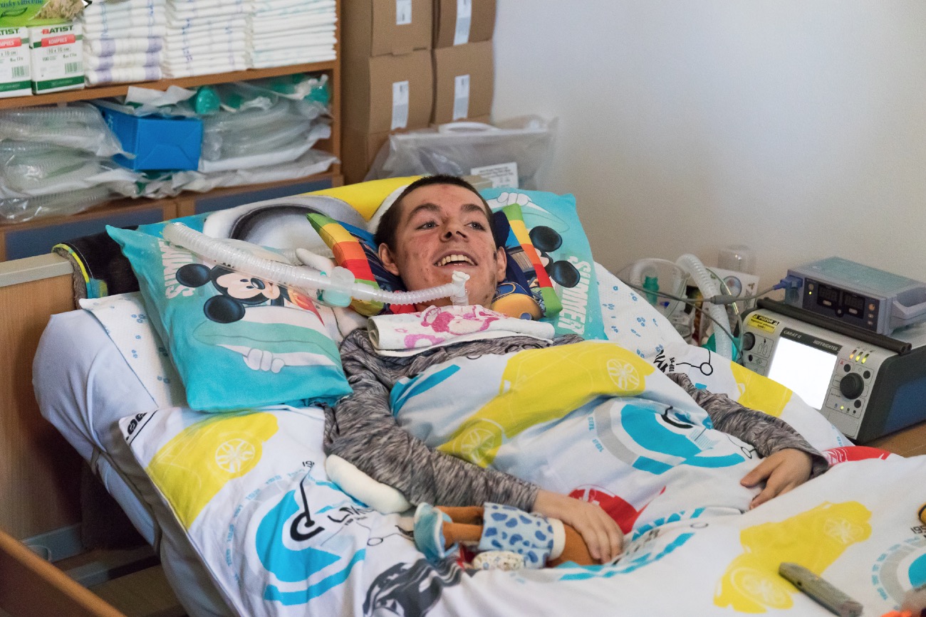 A tizenhét éves Tibor izomsorvadásban szenved, két éve fekvőbeteg.