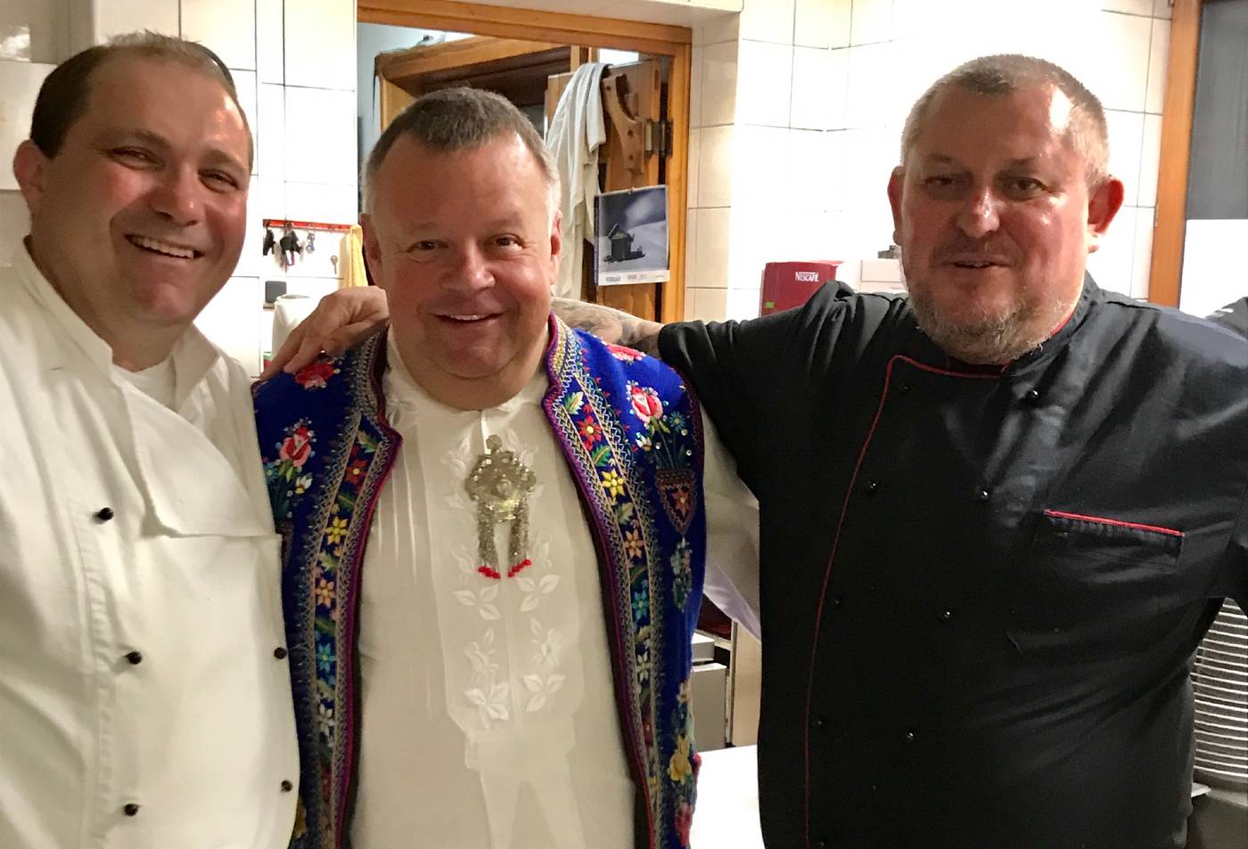 Jómagam és kollégám, Haulík Zoltán a tulajdonos részéről arra lettünk felkérve, hogy készítsük el az ünnepi menüt, és próbáljuk meg ötvözni a magyar ízvilágot a gorálokéval. Az egész konyhát szőröstül-bőröstül-segédestül a rendelkezésünkre bocsátották, így hamar megismerkedtünk és sok esetben ellestük egymás fortélyait, miközben rengeteget beszélgettünk a főzőcskézésről. Az ételválaszték elég sokszínűre sikerült, hiszen a tulaj szerint egy gasztronómiai orgazmust szerettek volna átélni… Hát mi dobtunk rá még egy lapáttal!