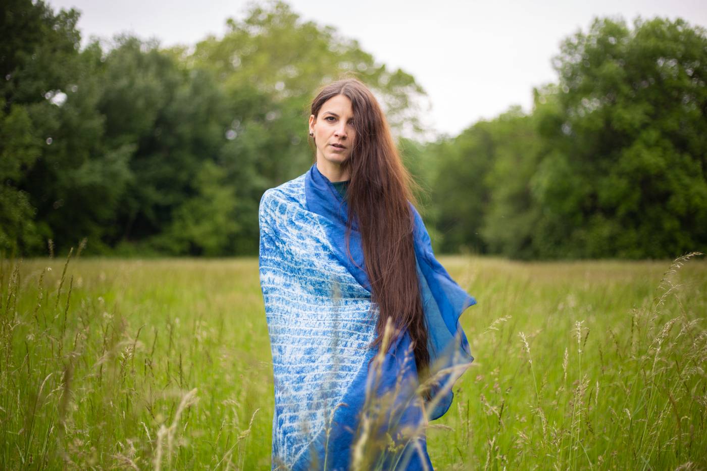 Vidámabb pillanataimban szeretek az élénk, vibráló színekkel dolgozni. Az indigókék akkor kerül leginkább a textilre, mikor áthat a méltóságteljesség és nagyon rendben vagyok. Imádom ezt a színalkímiai folyamatot, ami egyben a lelkem, érzelmeim megtisztulását és felemelését is magában rejti.