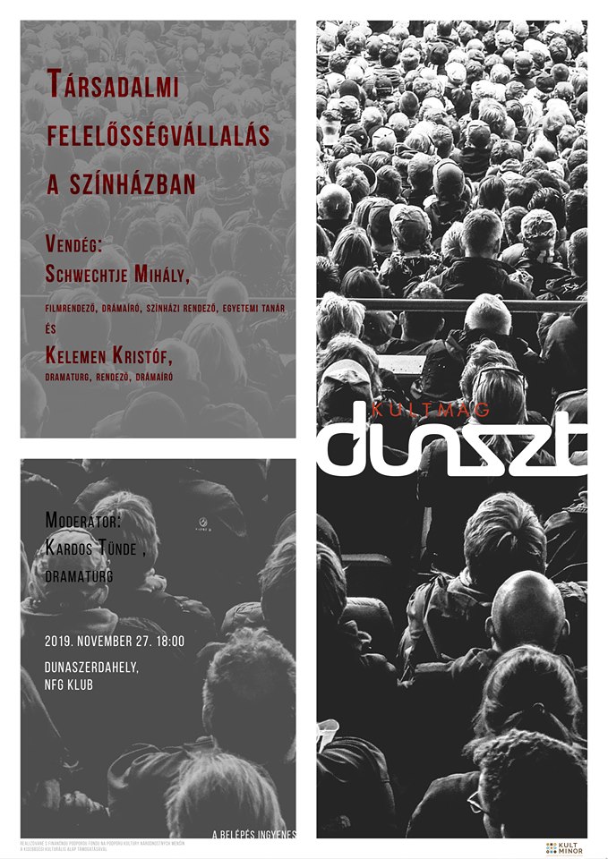 A november 27-ei esten ezúttal két olyan alkotóval beszélgetünk, akiknek markáns válaszai vannak a kérdésre, Schwechtje Mihály és Kelemen Kristóf ugyanis komolyan veszi, hogy a színház nem csupán szórakoztatásra szerződött intézmény, hanem társadalmi és politikai tér is, amelynek feladata nem más, minthogy szembesítse a nézőt azzal a közeggel, amelyben él. A két alkotó mind tematikailag, mind formanyelvileg különleges előadások létrehozói, munkáik rendszeresen szerepelnek nemzetközi platformokon. Nem véletlenül: kerüljön elő bármilyen téma, az itt és mostból nem engednek – a színház ugyanis nem panoptikum.