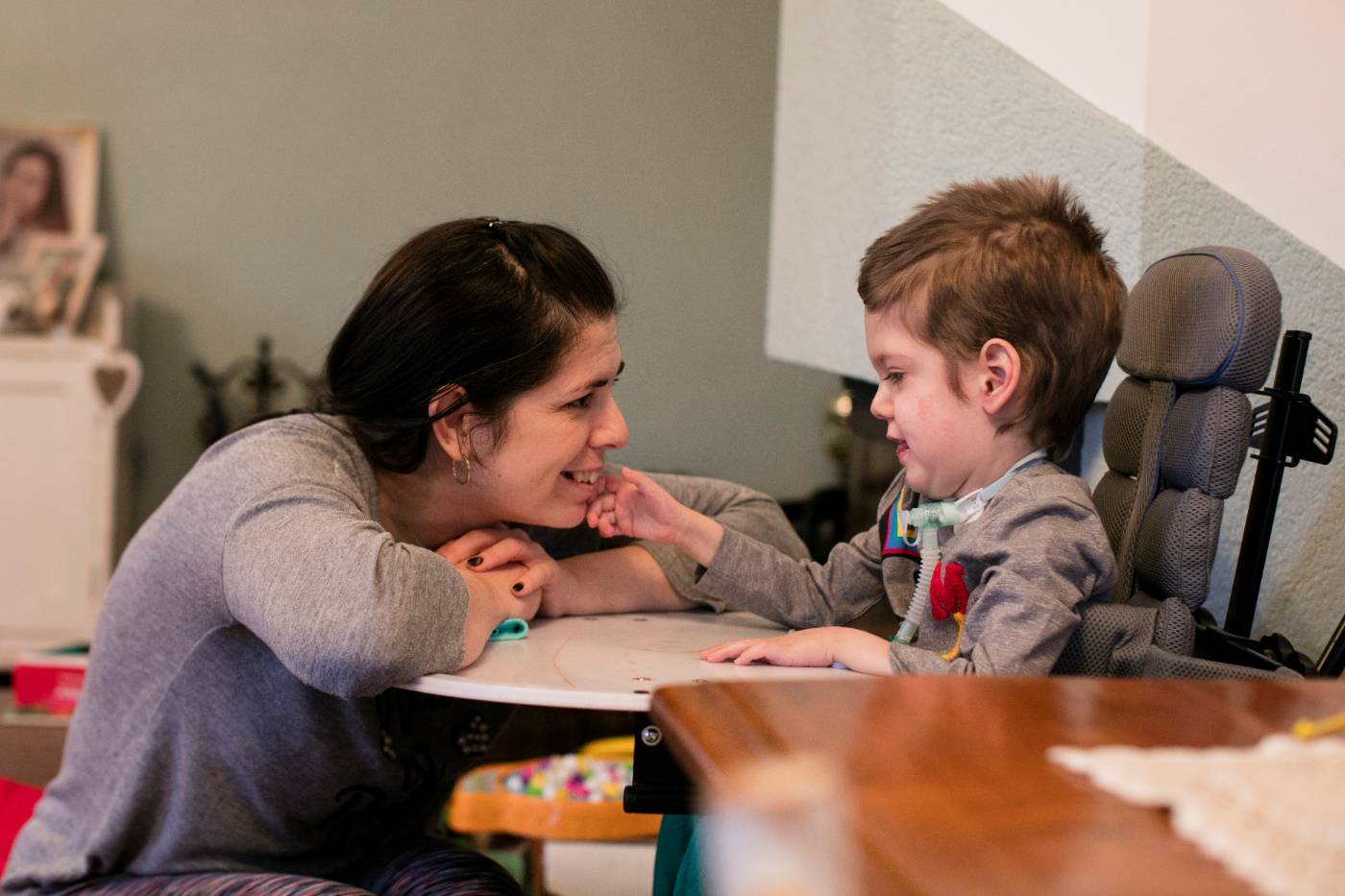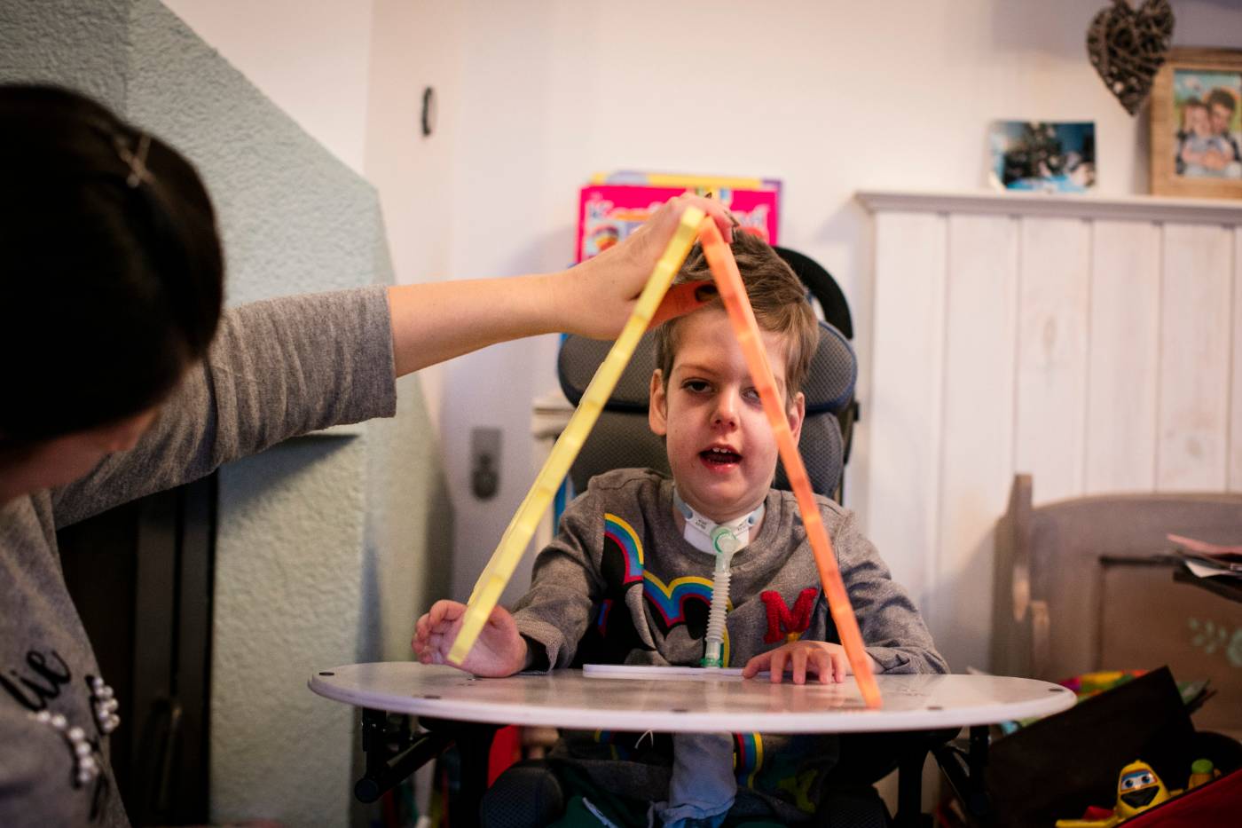 Ádi mindennapjaihoz mára már az egész család teljes mértékben alkalmazkodott. Felvettünk egy megszokott rutint, ami csak néhanapján változik. Reggel természetesen a nagy fiam iskolába megy, apa munkába, míg mi a reggeli után általában útra kelünk a mamataxival. A délelőtt minden nap tornákkal, terápiával vagy logopédussal telik, néha a kettő egyszerre kombinálva. Szerencsések vagyunk, mivel minden szükséges kezelés közel van hozzánk. A torna után jöhet egy kiadós szundi, ekkortájt megérkezik Bence is az iskolából. Mikor Ádi felkelt, jöhet a játszás, általában egy speciális eszközben, mint pl. a gurulós kerekesszéke, vagy az ugráló, amit nagyon szeret: az egy speciális szék, amivel asztalnál tud játszani. A tornák mellett a mentális fejlődésre is nagy hangsúlyt fektetünk, mindenképpen az a legfontosabb, hogy egy mosolygós és vidám kisgyerek legyen.