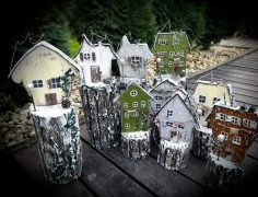 A házikókat is imádom csinálni, ott aztán van mit mütyürözni. Ezért is szeretem „építeni” őket. Igazából csak idén kezdtem a kísérletezést, de már vagy 3 éve nézegettem, keresgéltem, és gondolkoztam rajtuk. Említettem apukámnak, és ő elkezdte nekem vágni a pici-nagy, alacsony-magas, kéményes és kémény nélküli, ovális és lapostetős házikókat.