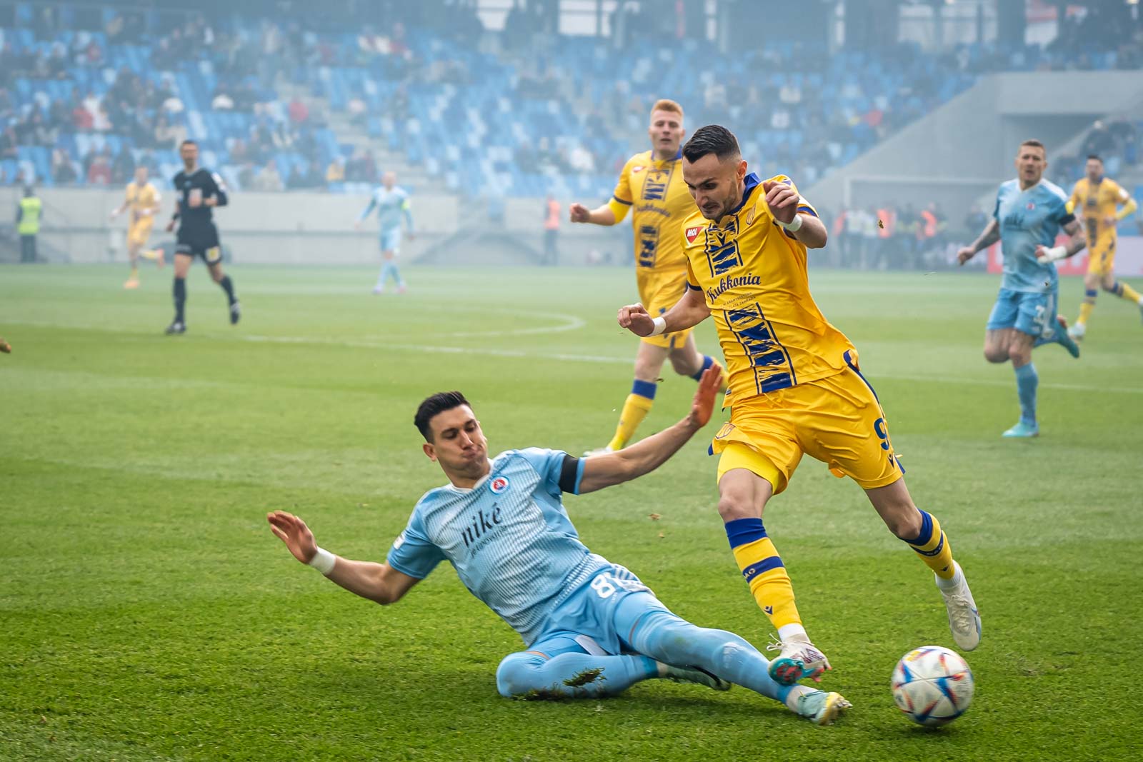 Ez a kiírás állt a szektorunkban a meccs kezdetekor. Aki értékeli, mily’ sikert értünk el már azzal is, hogy hatpontos előnnyel vezetve a bajnokságot érkeztünk Pozsonyba, nem keres kibúvókat, hogy végül miért vesztettük el a csatát. Három alapemberünk hiányzott, a bíró rosszul fütyörészett – ezek tények, de menni kell tovább, harcolnunk kell a végsőkig. Az égszínkékek otthonában, a hiányzóinkkal együtt is miénk volt az első félidő. Kalmár révén lőttünk egy gyönyörű gólt… és igen, picit baj volt a koncentrációinkkal, de még így is jó csapatunk van. Ezek a fiúk képesek rá, hogy bár a csatát ezúttal elvesztettük, a háborút végül megnyerjük. Talán még jól is jött ez a pofon, maximális koncentráció fog majd kelleni a továbbiakban! Mindent bele!