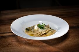 Jelen esetben újra az én választásom volt ez a húsnélküli étek, amely az első ránézésre is pazar látványban részesített. A spenótos, zsályás, szarvasgombás vajban szinte fürdőző ravioli töltött tészta kóstolása után szinte leesett az állam. Ez egy nagyon látványos és ízletes tésztaétel, amellyel a séf teljesen lenyűgözött. Ahogy kettéharaptam a forró tésztatáskákat szinte roppantak a fogam alatt minden egyes alkalommal, ezt mártogatva a vajban páratlan élményben részesültem. A csapat többi tagja, kiknek nagyobbik része húsimádó, szintén izgatottan fogyasztotta ezt a csodálatos olasz eredetű, egyben az egész világban népszerű fogást. Ha teszel egy próbát és megkóstolod, szinte biztos, hogy rabul ejt, és a jövőben nem „csak” tésztának fogod titulálni.