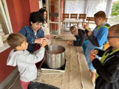 – mondta el a vezető és hozzátette, hogy remek visszhangja van minden évben a tábornak. A holnapi nap menüje csirkepaprikás lesz galuskával, amit már nagyon várnak. De a szülők sem maradtak ki a gasztronómiai élvezetekből, ugyanis minden nap megkóstolhatták az aznapi ételeket, amit a gyerekek készítettek.