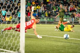 A sárga-kékek Kaša kiállítását követően a 13. perctől emberhátrányban játszottak. A hazaiak büntetővel szereztek vezetést, amire Csinger válaszolt. Sokáig nem tartott az öröm, a sosonok ugyanis a félidő végéig további két találattal szereztek előnyt. A másik játékrész sem kedvezett számunkra, újabb két bekapott góllal, 5:1-es végeredménnyel vonultunk az öltözőbe.