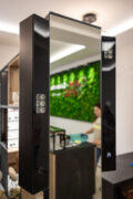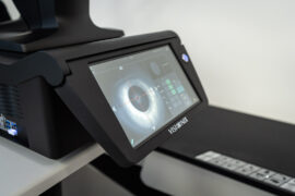 Van egy különleges gépünk, amely arra szolgál, hogy ha eladunk egy lencsét, le tudjuk fotózni az illetőt, aki megvásárolta. A gép pontos mérést készít arról, hol néz ki a szemüvegen, milyen távol van a lencse hátulja a szaruhártyától. Ezekkel az információkkal képesek vagyunk testreszabott szemüveget készíteni, így a lehető legjobb látást kapja a páciens.