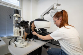 Először is szüksége van egy látásvizsgálatra, amelyet optometristáink végeznek el mindegyik üzletünkben. A másik eshetőség, hogy bejelentkeznek szemorvosi rendelőnkbe kivizsgálásra, vagy máshonnan egy szemorvosi papírral érkeznek hozzánk. Az optometristák nem betegségeket gyógyítanak, mint a szemorvosok, de nekik ugyanúgy főiskolai végzettség szükséges a munkájuk végzéséhez. Arra specializálódtak, hogy megállapítsák a megfelelő dioptriát, emellett pedig elemzést is készítenek, amit – ha a szükség úgy hozza – a szemorvoshoz továbbítanak. Nyilván az ilyen eredmény nélkül nem tudunk továbblépni azt illetően, kinek milyen szemüvegre van szüksége.