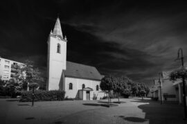 Vámbéry tér. A szocializmus idején a templomot panelházakkal vették körül, majd a 90-es évek közepén, Makovecz Imre tervei alapján a teret építészetileg rehabilitálták.