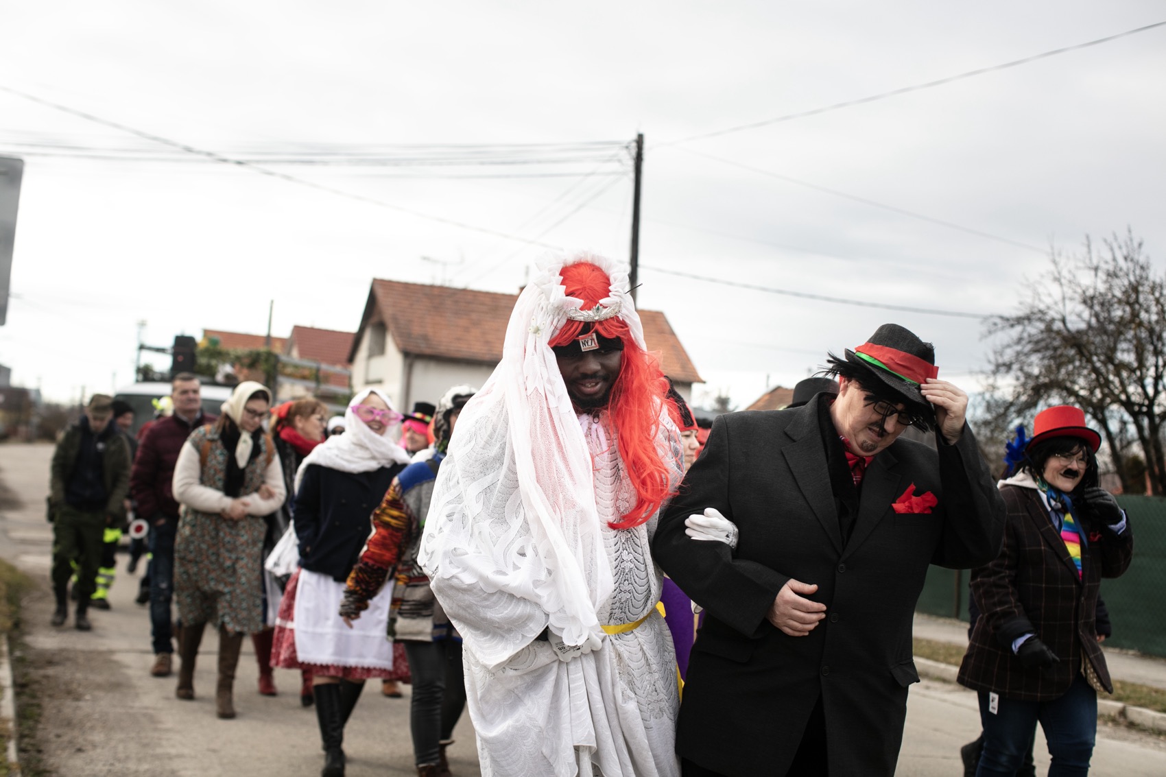 Vidám kompánia verte fel a két falu népét szombaton. Immár tizedszer kelt útra dőre serek, hogy kiűzzék a telet. Ez okból fogták magukat és vidám nótázás közepette vonultak át Nagyabonyból Nemeshodosba, hogy ott végleg elégessék a telet jelképező bábut. Útközben jópár háznál gondoskodott róla a falu népe, hogy a télűző sereg ne maradjon se éhes, se szomjas. Erről a víg menetről készültek a galériában szereplő fényképek.