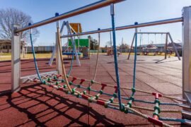 A szülők új padokon, nyugodt környezetben üldögéltek, mindez pedig önkormányzati beruházásból, kivéve az akkor átadott edzőpályát. Teljesült a városháza elképzelése, miszerint mindenki egy helyen tölthesse a szabadidejét, a legkisebbektől a nyolcvanévesekig. Az akkori játszótér leglátványosabb eleme a már említett hatalmas várdomb volt, amelyen négyszög alakú vár állt. Tulajdonképpen óriási színes akadálypályákkal tarkított mászóka és csúszdakomplexum.