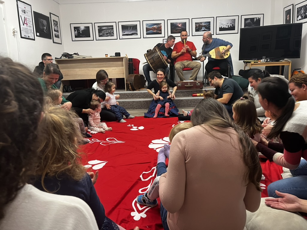 A zenebölcsit 2024 januárjában indítottuk el zenésztársaimmal Komáromban a Zichy-pontban. Az egyik legnagyobb motivációm a kislányom volt, aki akkor majdnem egyéves volt, és szerettem volna őt a magyar népi kultúrával körülvenni, megismertetni.