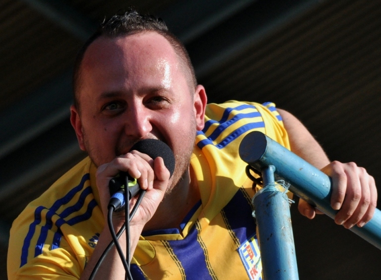 Visszatérve a lelátóra, időszakosan Czafik Gábor, alias „Huli” kezében is láthattunk megafont, akitől egyébként sem a „kibli”, sem a dob nem volt idegen. [kibli = megafon, szurkolói szleng]
